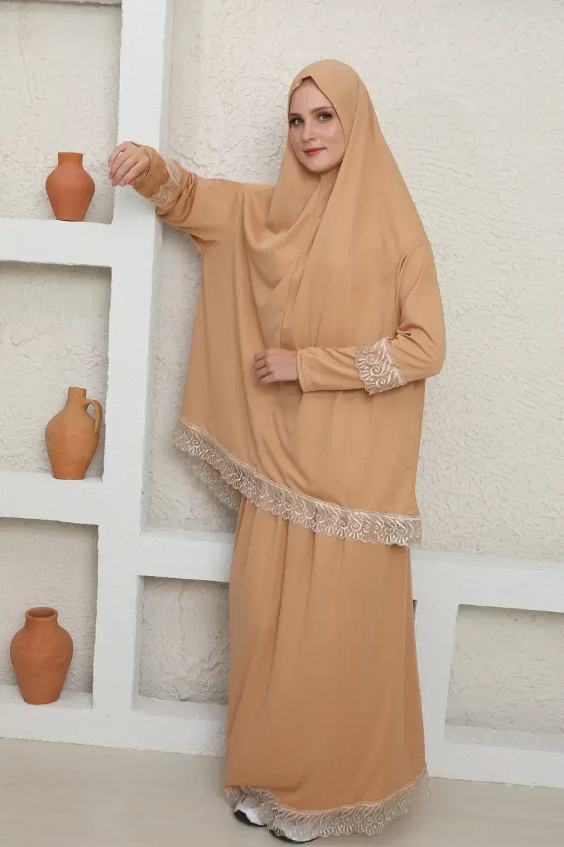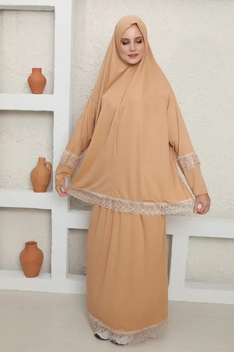 The Self-Hijab Women's Prayer Dress - Cream, combining elegance and comfort in modest fashion, is now available with the assurance of DEFKA HOME WEAR! This special design will help you maintain your elegance both while performing your worship and in your daily life. Thanks to its long-sleeved design, it provides full coverage, while its comfortable cut does not restrict your freedom of movement. This product you are viewing is offered in limited quantities, so hurry! By choosing DEFKA HOME WEAR among many sellers, experience the privilege of owning a quality product. The prices of our products may vary according to factors such as seller ratings and delivery speed, but as DEFKA HOME WEAR, we always strive to offer the most affordable price. You can order a maximum of 10 of this product, so we aim to reach and be liked by more people. If you are not satisfied with the product, you can take advantage of the free return option within 15 days. You can review our return conditions for detailed information. This prayer dress offers an elegant look by gently covering your body lines with its long length. Thanks to its regular fit, it provides comfortable use without tightening your body. Its polyester-blend fabric offers both durability and softness, providing a long-lasting use experience. Its plain and simple pattern can be easily combined with all kinds of accessories and offers a timeless elegance. With its casual cut suitable for daily use, you can experience both comfort and elegance together. In short, the Self-Hijab Women's Prayer Dress - Cream is an ideal choice that offers all the features you are looking for in modest clothing.