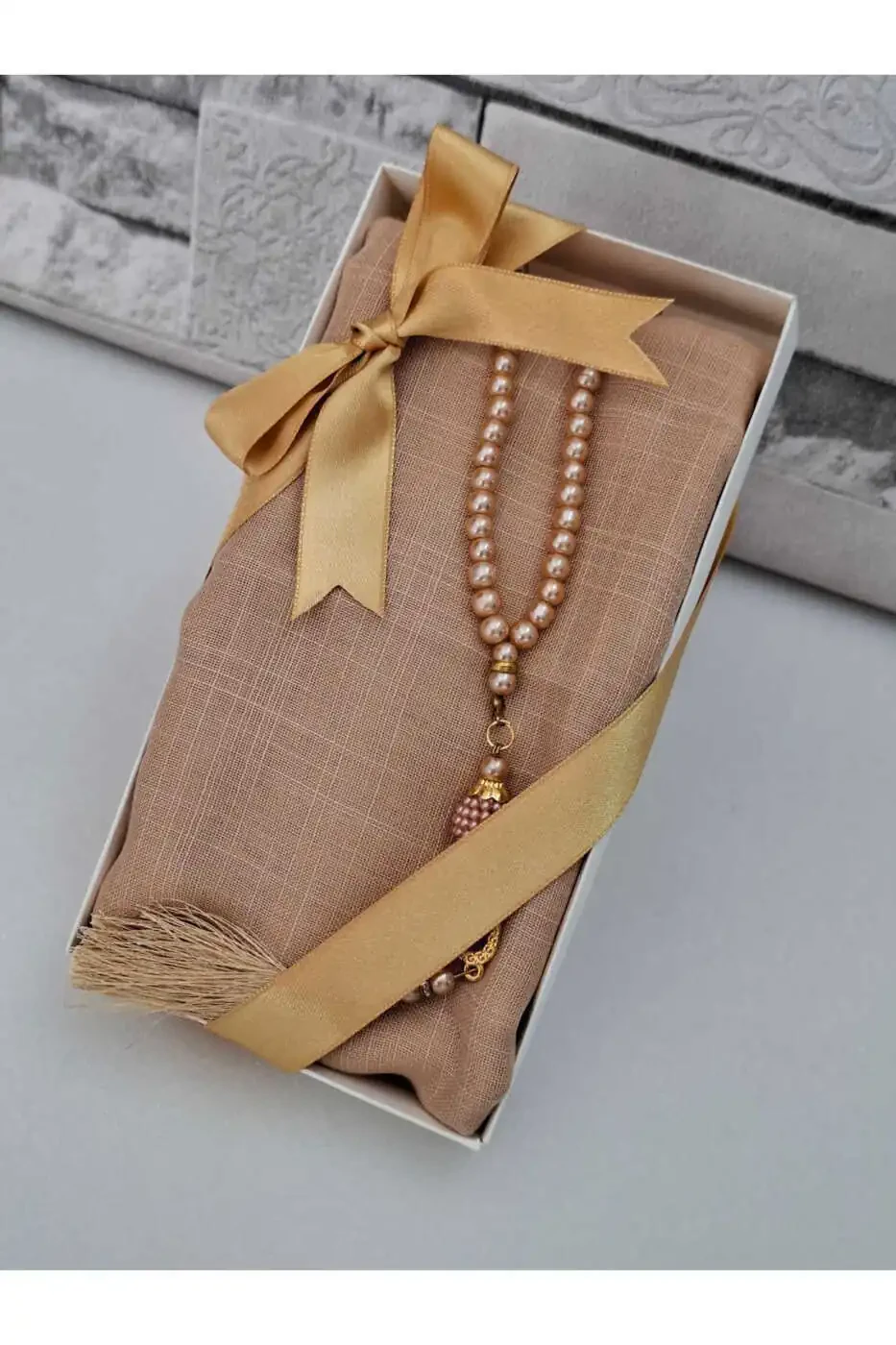 This special set stands out as both a useful and aesthetic accessory in your special moments such as mevlit, circumcision, hajj and umrah. The tasbih box decorated with pearl details increases the elegance of the gift set and allows you to leave an unforgettable impression on special occasions.