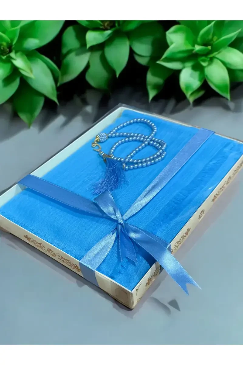 Gift, Dowry, Mawlid, Bohcha, and Specially Designed Flamed Prayer Cover Rosary Set for Bridal Bohcha (BLUE)**Product Description**If you want to give your loved ones an unforgettable gift, complete your dowries with elegance, add meaning to your Mawlids, carefully prepare your Bohchas, or make the bridal Bohcha special, our BLUE Flamed Prayer Cover Rosary Set is just for you! This unique set is both visually stunning and a highly valuable spiritual option. It will make your prayer worship more peaceful and meaningful, and will add value to your special days. Our set is made of high-quality materials and offers long-lasting use. The prayer cover, designed with the calming tone of blue, dazzles with its elegant flamed pattern. The lightweight and useful structure of the cover allows it to be easily carried and used comfortably anywhere. The rosary in the set is an accessory that will accompany you while you perform your prayers after prayer, and you will not want to drop it from your hand. The beads of the rosary are made of high-quality material and have a silky touch. Every detail of this set has been carefully thought out and is ideal for making your loved ones happy and giving them an unforgettable gift. Whether on a special day or just to show your love, this set will always be the right choice. The BLUE Flamed Prayer Cover Rosary Set is ready to accompany your special moments with both its visual elegance and spiritual value. It is a candidate to be an indispensable part of dowry chests, a meaningful gift for Mawlids, an elegant complement to Bohchas, and the most special part of the bridal Bohcha. With this set, you can express the value you give to your loved ones in the most beautiful way. Our product is not just a gift, but also an expression of love, respect and care. Each piece is made of carefully selected materials and will maintain its quality like the first day for many years. In this way, your loved ones will remember you every time they use this gift and the bond between you will be strengthened even more. Touch your loved ones spiritually with our BLUE Flamed Prayer Cover Rosary Set and give them an unforgettable experience.**Product Features*** Ideal as a gift.* Suitable for dowry.* Can be preferred as Mawlid gift.* Can be used as Bohcha.* Specially designed for bridal Bohcha.* It is BLUE.* It has a flamed prayer cover.* Includes rosary.* Made of high-quality material.* Long-lasting.* Lightweight and useful.* It has an elegant and stylish design.* High spiritual value.**Additional Information**Our product is sent in its special box. The prayer cover and rosary should be cleaned by gently wiping with a damp cloth. Please do not use bleach or chemical cleaners. It is recommended to keep the product away from direct sunlight and excessive moisture for long-lasting use.