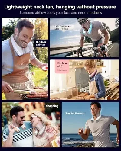 Heelkl AI Neck Fan bog'dorchilik, sayohat, yurish, velosiped va konsertlar kabi turli xil ochiq havoda o'tkaziladigan tadbirlarda salqin bo'lishingizga yordam beradi. Bundan tashqari, ishlayotganda, mashq qilayotganda, ovqat pishirayotganda yoki issiq muhitda bo'lganingizda barcha yopiq joy stsenariylari uchun ham mos keladi. Ushbu shaxsiy bo'yin fani har doim va har qayerda qulay sovutish tajribasini taqdim etib, haroratning sizni sekinlashtirishiga yo'l qo'ymaydi.