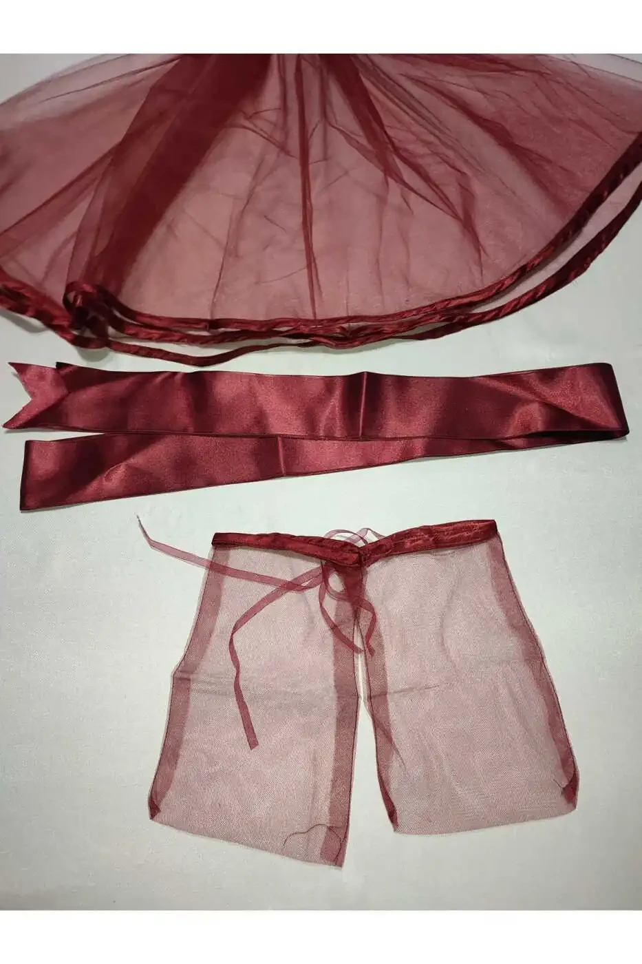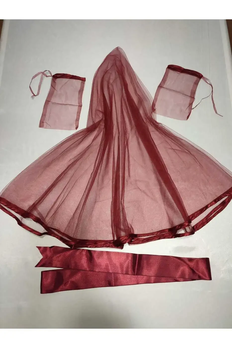 We present you with a magnificent set to complete the magical atmosphere of your henna night! This set, with its burgundy beaded bridal henna veil, belt and gloves, will be a perfect choice for your henna night. Its elegant and stylish design will provide a stunning look on your henna night, accompanying your unforgettable memories.