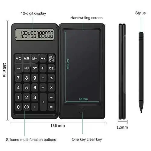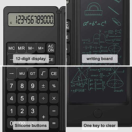 【Two functions in one】: Calculators, writing tablet, with 12 digits display, write while calculating, very convenient for recording. 【NO KEYPAD TONE】: Calculators with Comfortable silicone, soft touch keys,quiet and noise-free. which brings you more comfortable touch feeling and a silent using experience. 【SMALL AND PORTABLE】: Calculators with Clamshell design makes it easy to carry, perfect choice for business at work, accounting calculations, student calculations, home use, etc 【REPEATED WRITING】: Calculators with No dust and ink, LCD handwriting,With an erase button, you can clear the full screen with a click 【WHAT’S IN THE BOX】: 1 x Calculators, 1X The instructions.1X Handwritten pen, We are always here to provide you 24 hour after-sale support!