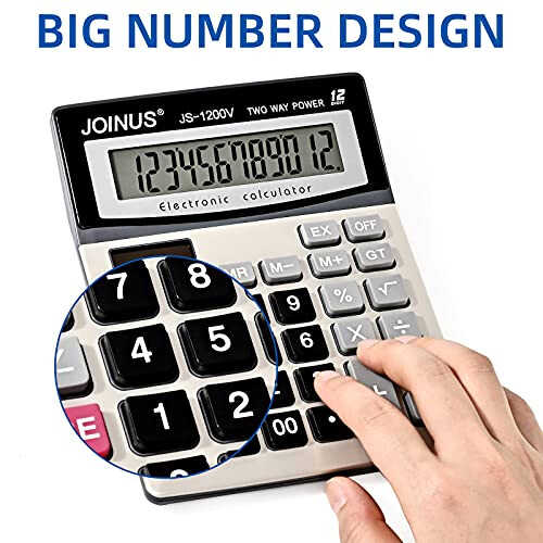 Kuchli kalkulyator: 12 raqamli LCD displey, kattal tugmalar va ikkilamchi quvvat manbai