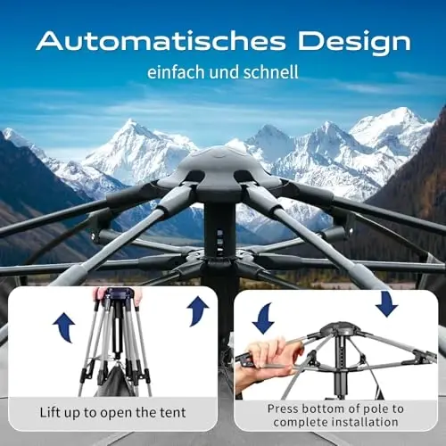 Размеры продукта: 200x200x135 см. Установка и сборка палатки чрезвычайно просты. Руководство пользователя находится в комплекте. Для долговечного использования палатки очищайте и сушите ее после использования. Рекомендуется подложить под нее ткань, чтобы не повредить землю при использовании на твердых поверхностях. В ветреную погоду закрепите палатку, используя фиксирующие веревки.