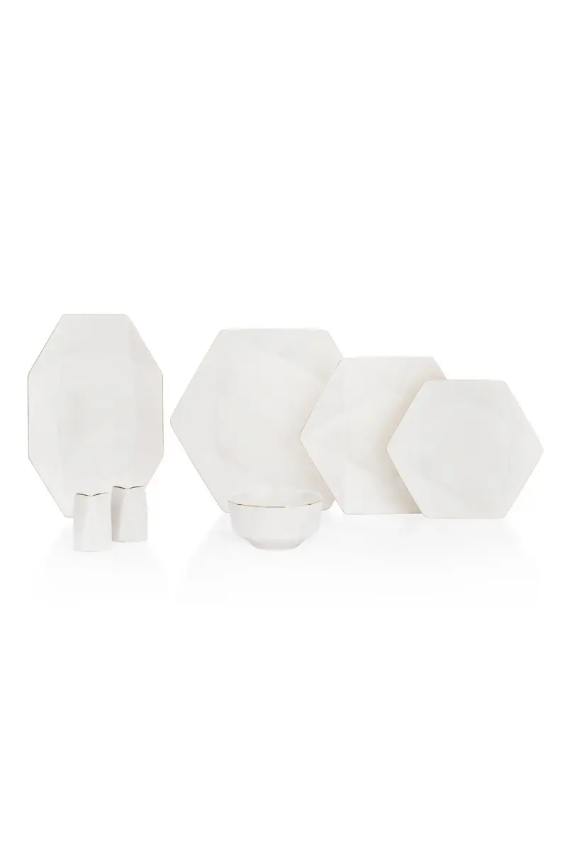 The Hexa Dinnerware Set 56 Pieces Gold, designed to add unique elegance and sophistication to your tables, will be the darling of your kitchen and dining room. Ideal for 6 people, this set will transform every meal into a special experience.
