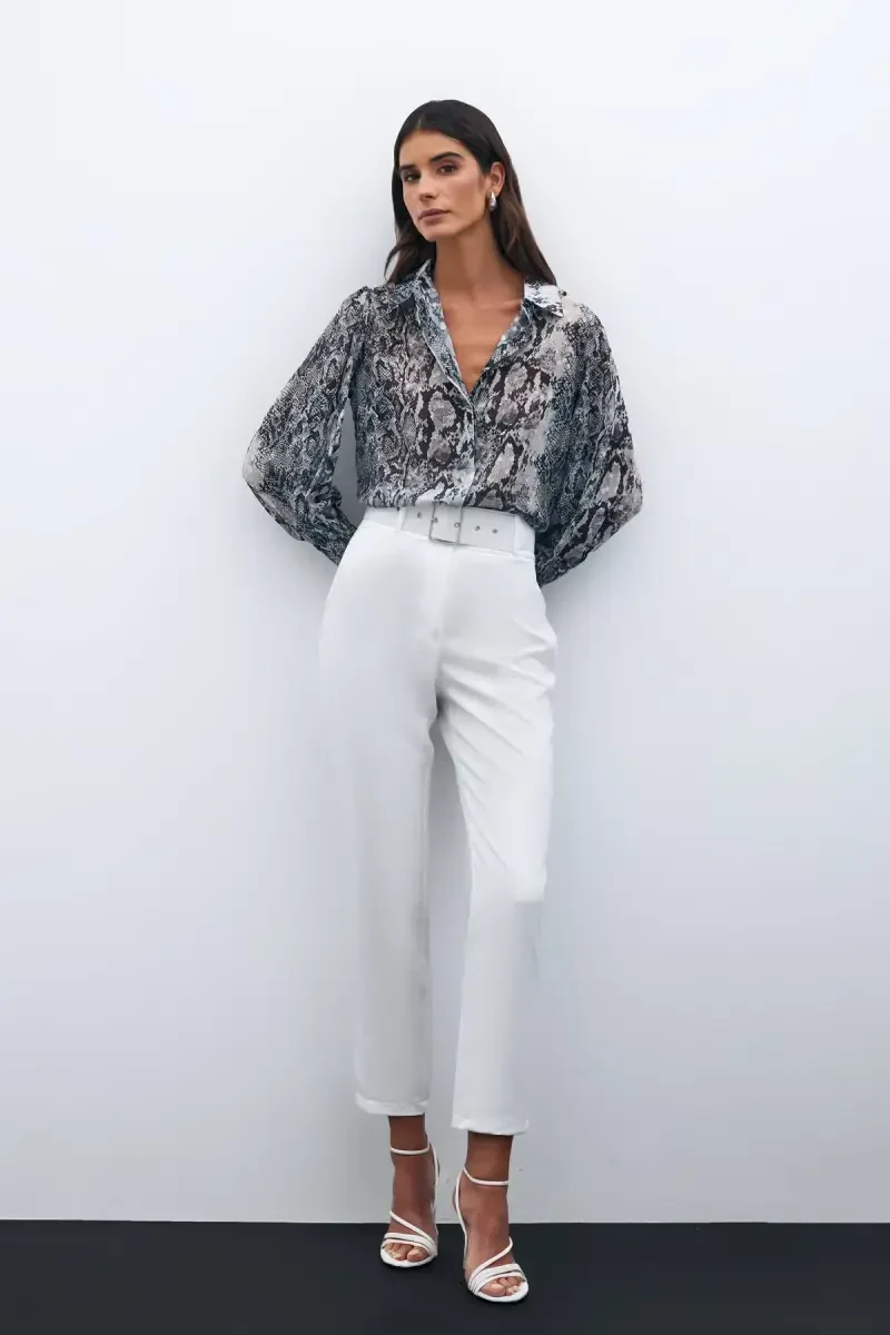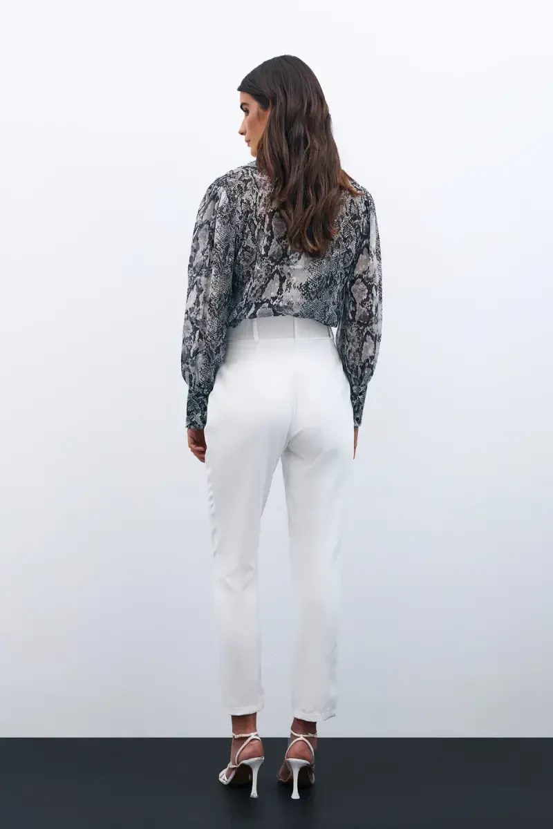 Meet our high-waisted belted trousers that combine style and comfort! This trousers in ECRU color can be matched with any combination, making it an excellent choice to create a sophisticated style. Its comfortable fabric and high waist provide all-day comfort, while its elegant cut and stylish belt detail help complete your style.
