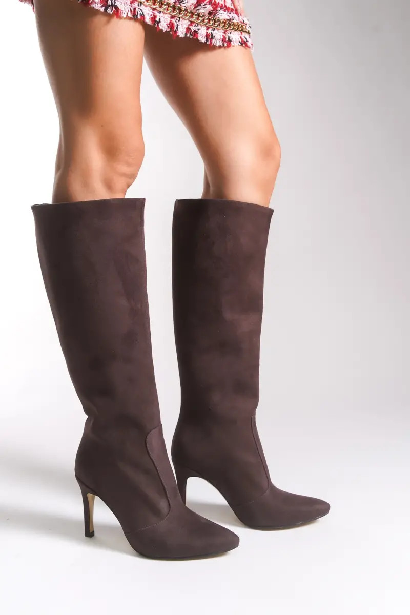 Hilnaril Kadın Sivri Topuklu Çizme 00123000 Kahverengi Süet-Kahverengi Süet
