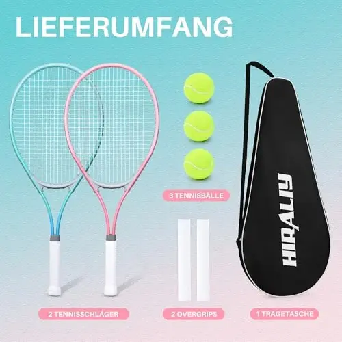 The HIRALIY 27" Tennis Rackets Set is the perfect starting point for anyone looking to start playing tennis or improve their current game. Each piece in the set is designed with quality and ease of use in mind. Lightweight rackets, comfortable grip handles, and appropriate string tension help you improve your game, while the carrying bag makes it easy to take the set anywhere. This set is an ideal option for those who want to have fun and adopt a healthy lifestyle.