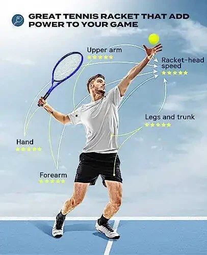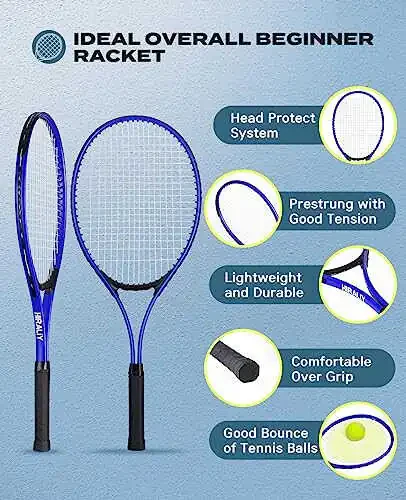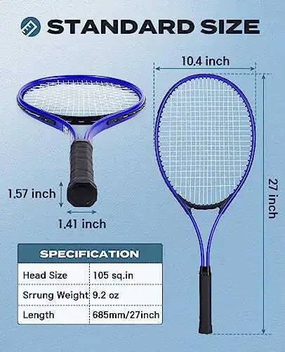 Набор теннисных ракеток HIRALIY для 2 игроков - идеальный выбор как для новичков, так и для опытных игроков. Его легкая и сбалансированная конструкция обеспечивает превосходный контроль и комфорт. Ракетки длиной 27 дюймов идеально подходят для студентов и начинающих. В комплект входят 3 теннисных мяча, 2 ручки для ракеток и 1 теннисная сумка.