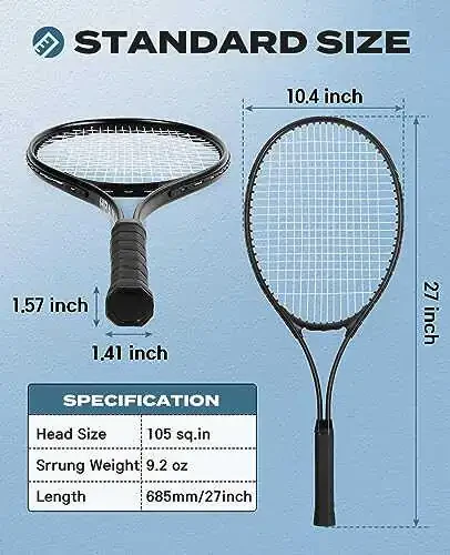 HIRALIY Теннисные ракетки для взрослых, 2 игрока, 27 дюймов, сверхлегкие теннисные ракетки для тренировок и начинающих, набор теннисных ракеток для игр на открытом воздухе, в комплекте 3 теннисных мяча, 2 теннисных овергрипа и 1 теннисная сумка