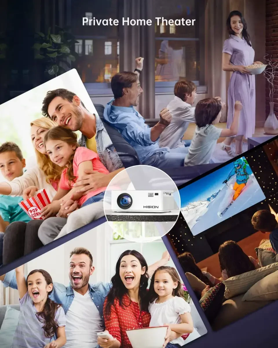 HISION Bluetooth 1080P FHD LCD Mini Projektör, 200 inç Ekranlı, Beyaz