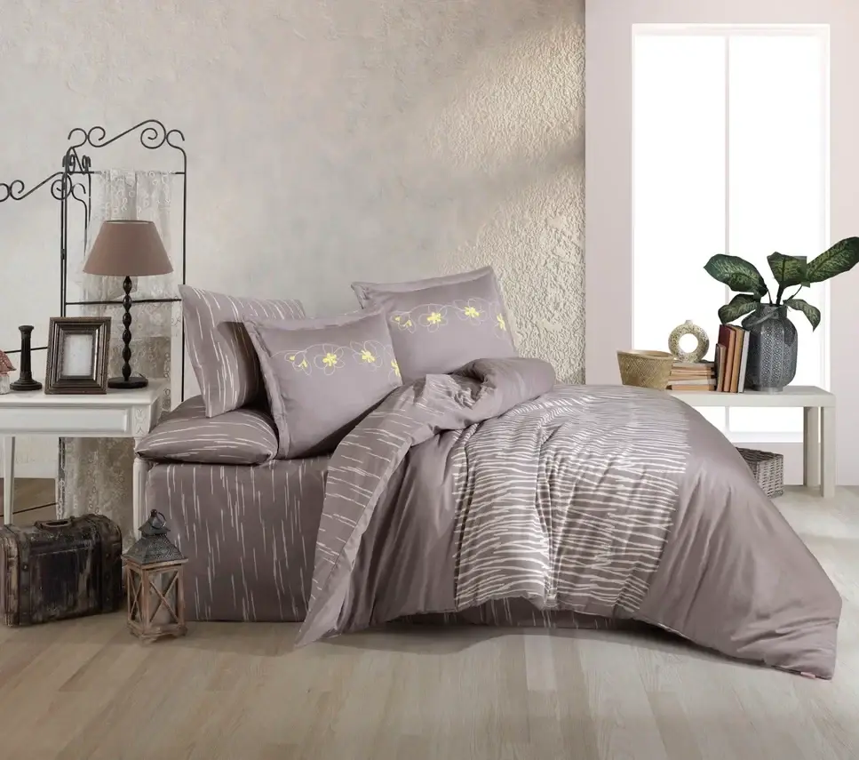 Hobby Çift Kişilik Saten Nevresim Adalia Platin