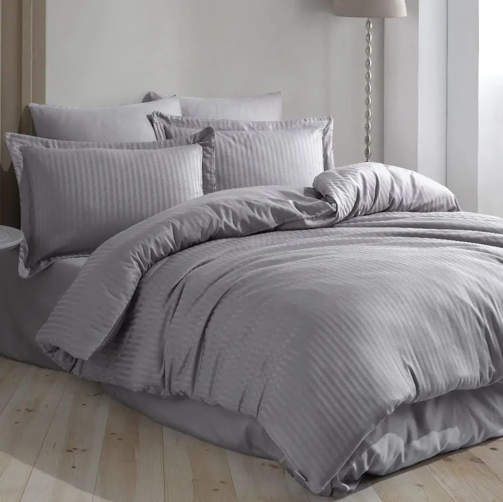 Hobby Çift Kişilik Saten Nevresim Çizgili Gri