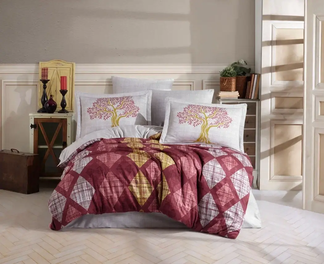 Hobby Çift Kişilik Saten Nevresim Ruth Bordo