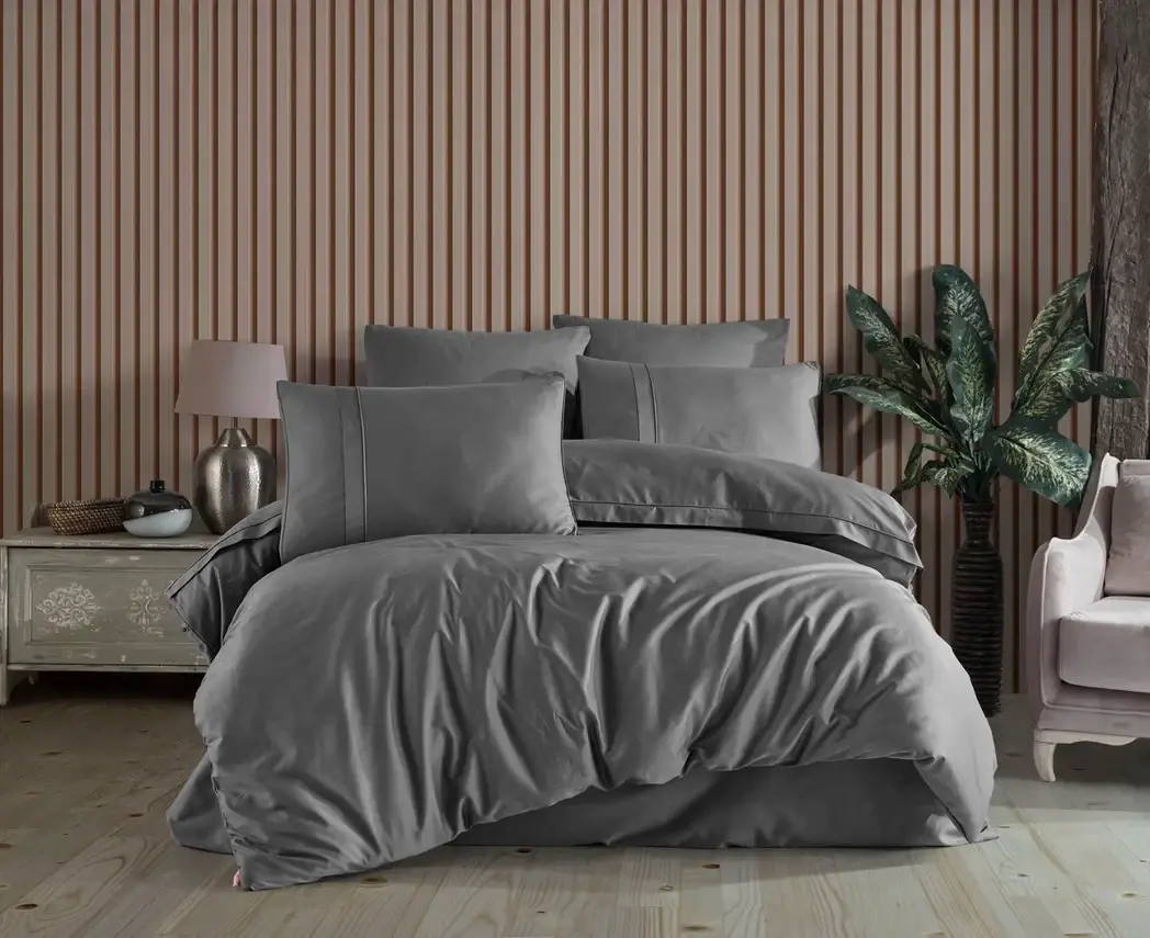 Hobby Premium Deluxe 300TC Çift Kişilik Saten Nevresim Takımı Plain Gri