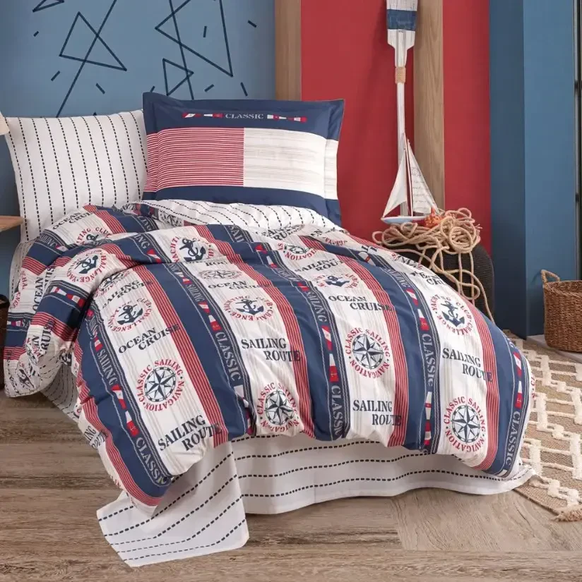 Hobby Marin Lacivert Bir kishilik Poplin Yopinchiqlar To'plami | %100 Paxta