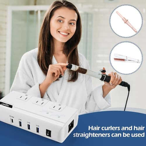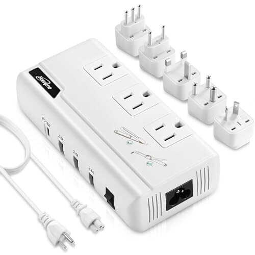 【Quality Converters and Adapters for Travel】Hoenjuno voltage converter us to europe supply max up 230 watts and 220v to 110v converter for international travel, perfect for hair appliances (hair straightener, flat iron, curling iron, hot air brush), and electric shaver/toothbrush, cell phone, camera, watch, laptop, bluetooth speaker, and other electronic devices. 【Worldwide Use Power Adapters for International Travel】This power converter adapter compo has 1 US power cable and 5 International adapters (UK, EU, AU, IT, IN adapter), step down conv-erter the voltage from 100 - 240V 50/60Hz worldwide to 110 - 120V 60Hz in US Appliance, so you could use American electronics in 220V/ 240V countries such United Kingdom, Continental Europe, Italy, Australia, Thailand, Japan, China,Russia etc, more than 150 countries over the world. 【Multiple Charges Simultaneously】Hoenjuno step down converter equips 3 AC outlets and 3 USB charging ports with 18W PD Type-C Port, which support the newest Usb-C phone charging. This travel voltage adapter for multiple devices can help you charge multiple devices at the same time. A simple solution to all charging problems in foreign countries. 【Safety & Quiet】Fan work silent and converter will auto shutdown for surge protection, overheat, over-current, over-temperature or short circuit to ensure your safety. Silent working fan brings you undisturbed sleep. 【WHAT YOU GET】Hoenjuno Universal Travel Adapter, Include 5 feet detachable US power cable and 5 International adapters, storage bag,user manual, 18 months warranty and 100% customer service.