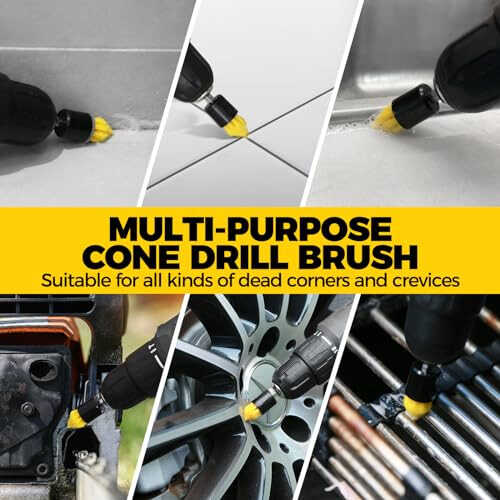 Holikme 8 Piece Drill Brush Attachments Set, Power Scrubber with Extend Long Attachment,Cleaning Supplies for Bathtub, Shower, Grout, Tile(Yellow)