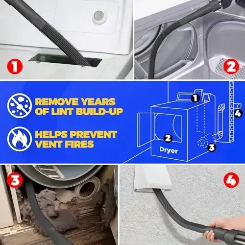 The dryer vent is one of the most frequently neglected areas in the home. Over time, lint and dust accumulate, blocking airflow and causing the dryer to use more energy. This not only increases your bills but also significantly increases the risk of fire. The Holikme Dryer Vent Cleaner Kit offers an effective and practical solution to these problems. Thanks to its specially designed vacuum hose attachment and brush, you can reach even the most inaccessible spots in your dryer.This set is not only for cleaning your dryer's ventilation system, but also a versatile cleaning tool that you can use in other areas of your home. You can easily clean dust and dirt in hard-to-reach places such as under furniture, behind radiators, or in narrow corners. The Holikme Dryer Vent Cleaner Kit makes your home cleaning easier, faster, and safer.Our product is extremely easy to use. Simply attach the vacuum hose attachment to a standard vacuum cleaner and place it in your dryer's ventilation system. Then, gently clean the lint and dust build-up with the brush. Regular cleaning will extend the life of your dryer, save energy, and most importantly, increase the safety of your home.The Holikme Dryer Vent Cleaner Kit is made of durable materials and is long-lasting. The brush bristles provide effective cleaning without damaging the ventilation system. The vacuum hose attachment is designed to fit different sized ventilation systems. This way, you can use it safely on different brands and models of dryers.Remember, regular dryer vent cleaning not only ensures the safety of your home, but also contributes to your budget by saving energy. Experience safety and efficiency together in your home with the Holikme Dryer Vent Cleaner Kit!