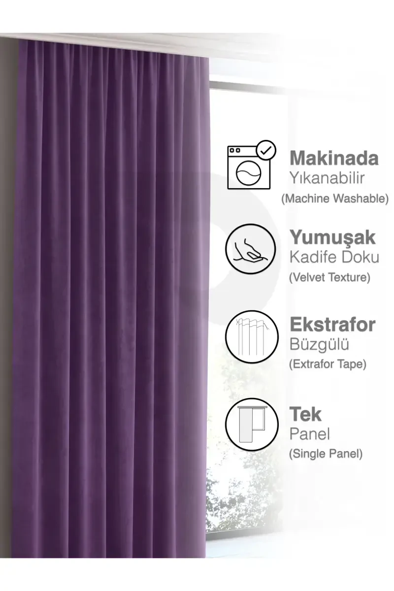 Home Daily Series Add elegance and vibrancy to your home with the Menekşe Moru Ada Curtain! This unique curtain brings a fresh breath to your living spaces with its modern design and eye-catching violet purple color. Thanks to its high-quality fabric, it offers long-lasting use and creates a comfortable atmosphere by providing a perfect light balance in your room. The island pattern takes the curtain's elegance one step further and adds a sophisticated touch to your home. With its aesthetic and functional features, the Home Daily Series Ada Curtain will be an indispensable part of your home decoration.Ürün AçıklamasıHome Daily Series Menekşe Moru Ada Curtain has a unique design that will completely change the atmosphere of your home. The vibrant and energetic tone of violet purple adds warmth and a positive atmosphere to your room. The island pattern on the curtain offers a modern and stylish look, adding a sophisticated touch to your living spaces. Thanks to its high-quality fabric, it stays like the first day for many years and can be easily cleaned. This blackout curtain stands out not only with its aesthetic but also with its functional features. It helps you create the atmosphere you want by perfectly controlling the light entering your room. While enjoying natural light during the day, it protects your privacy in the evenings. Home Daily Series Ada Curtain is suitable for use in different areas such as bedroom, living room, living room. This curtain, which will harmonize with your home decoration and add value to your living spaces, is also a stylish and meaningful option that you can give to your loved ones. It is extremely practical to use and can be easily hung. Choose Home Daily Series Menekşe Moru Ada Curtain to renew the atmosphere of your home and increase your quality of life. This curtain is not just a decoration product, but also an expression that reflects your lifestyle. Beautify your living spaces with this unique curtain that will enchant your guests and always give you pleasure.Ürün Özellikleri* Color: Violet Purple* Pattern: Island* Fabric Type: High Quality Polyester Blend* Light Transmission: Medium Level (Provides Desired Light Balance)* Usage Areas: Bedroom, Living Room, Living Room, Children's Room* Easy to Clean and Iron Fabric* Long Lasting and Durable* Modern and Stylish Design* Adds Freshness and Vitality to the Room* Suitable for Standard Curtain Cornices* Hanging Shape: Compatible with Rustic, Pipe or Rail System* Size: In Specified Sizes (Width x Height)* Lightweight and Easy to Use* Fade Resistant ColorsEk BilgilerIt is important to follow the washing instructions to ensure the longevity of your product. You can wash the curtain at low temperature and on a delicate program. Avoid using bleach. It is recommended to dry the product by hanging it instead of drying it in a dryer. If necessary, you can iron it on low heat. There may be slight differences in the color tone of the product due to screen settings. Only the curtain is included in the package, curtain accessories (cornice, rustic, etc.) are not included.