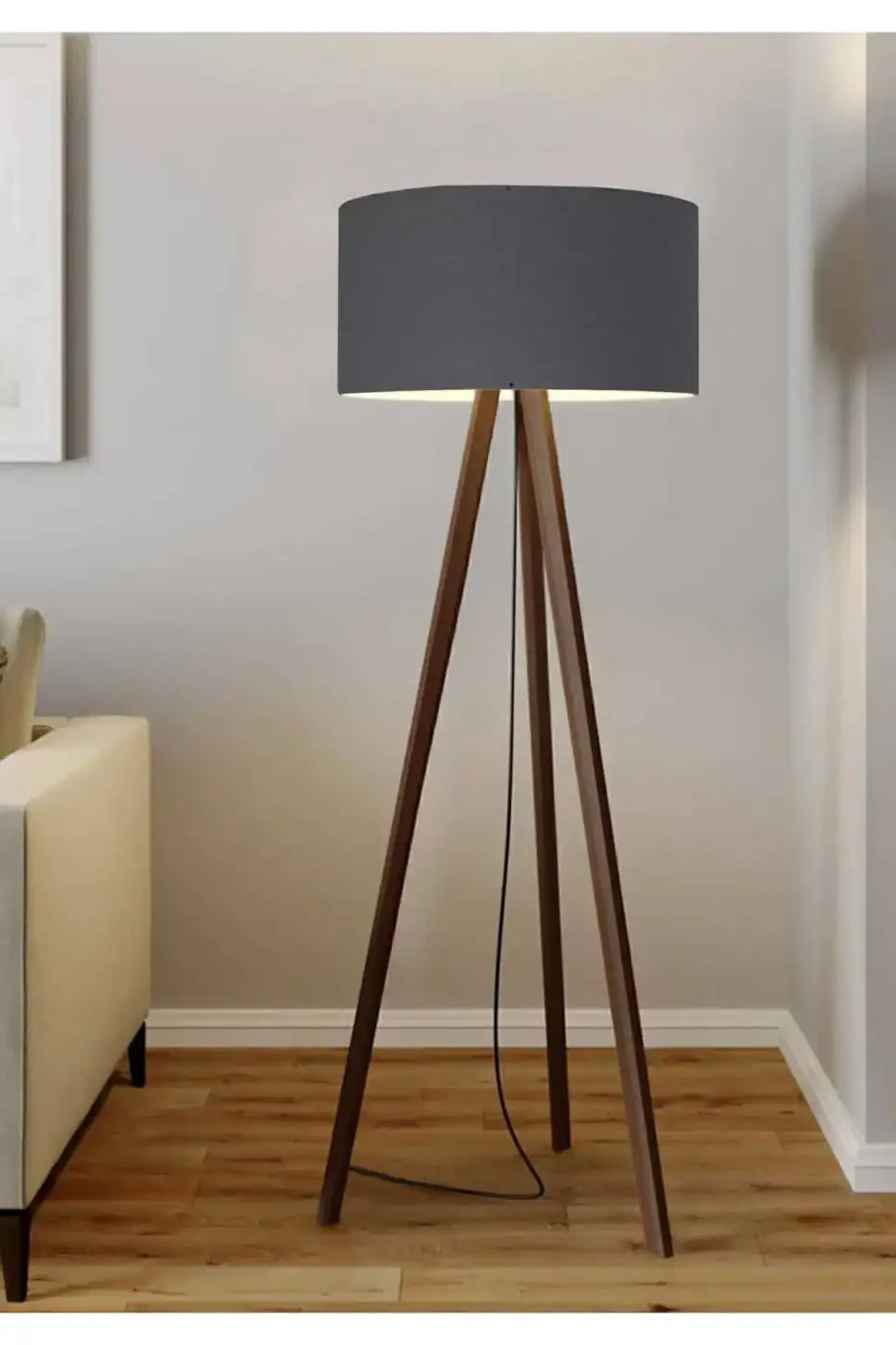 Uyningiz uslubini Homing Antrasit Matoli Silindrsimon Boshi Yog'och Uch Oyoqli Lampa bilan to'ldiring!