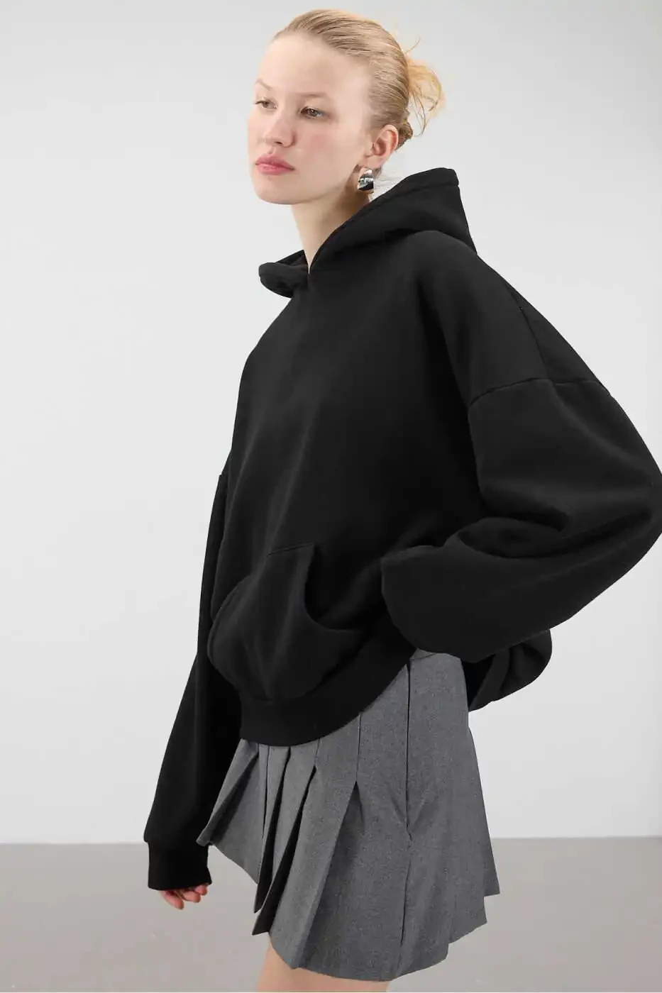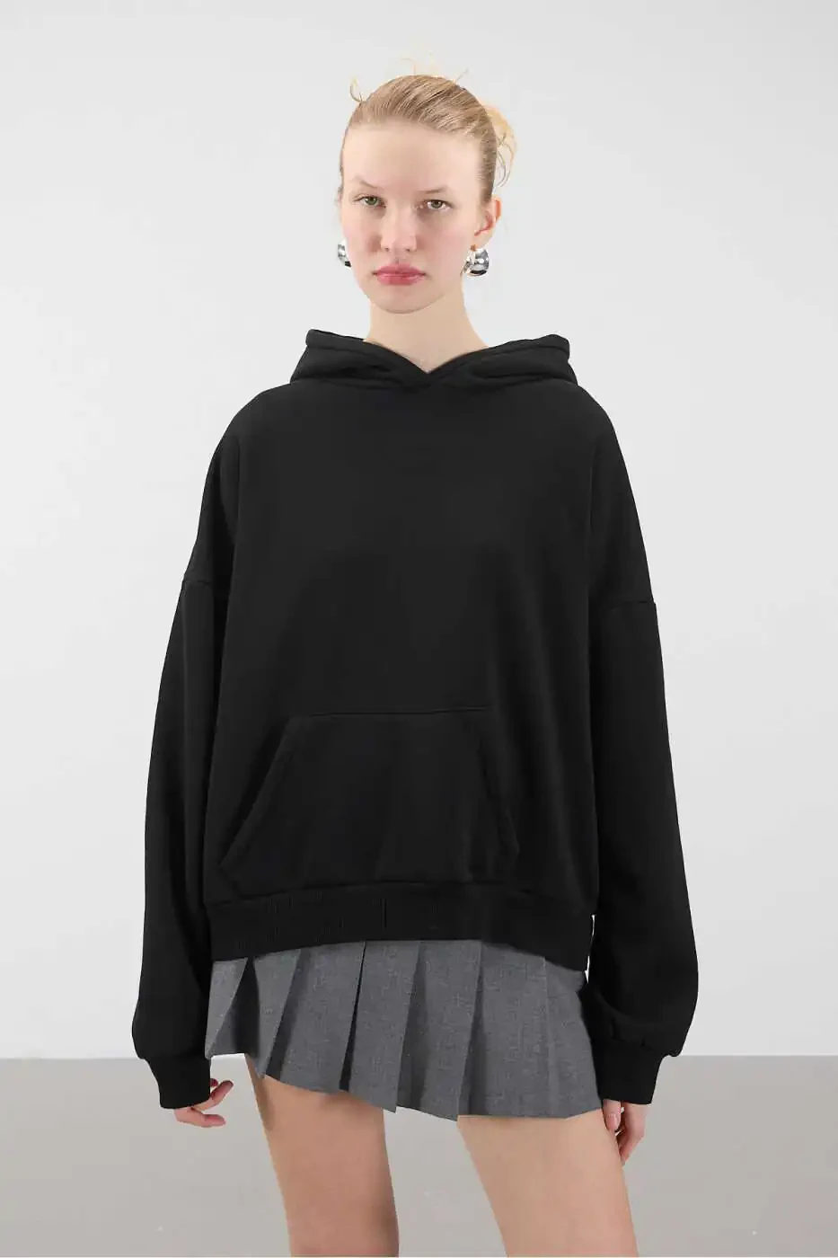 Catch the perfect harmony of comfort and style with the Addax Hooded Fleece Basic Sweatshirt S1596-K5. This sweatshirt is an ideal option for your daily use and is a candidate to be an indispensable part of your wardrobe. Its hooded design keeps you warm in cold weather, while its oversized cut offers comfortable use. The dropped shoulder detail provides a modern and trendy look, while the rib details on the cuffs and hem help the sweatshirt maintain its shape and create a stylish stance. The kangaroo pocket is both a useful detail and adds a sporty touch to the design.With its fleece interior, meaning a soft, fluffy texture, this sweatshirt leaves a comfortable feeling on you all day long. This soft texture that gently touches your skin keeps you warm on cold winter days. Thanks to its basic design, you can make different combinations and complete both your sporty and daily elegance. You can easily combine this sweatshirt with jeans, leggings or tracksuits, allowing you to reflect your style.The product's 70% cotton and 30% polyester blend fabric offers both durability and comfort. Cotton allows your skin to breathe, while polyester contributes to the fabric's longer lifespan. In this way, you can enjoy your sweatshirt for a long time. Colors may vary due to light differences in product shooting, so we recommend that you carefully examine the product photos before ordering. The Addax Hooded Fleece Basic Sweatshirt S1596-K5 is the perfect choice for women who care about both comfort and style. Enjoy comfort without sacrificing your style during your daily activities, weekend getaways or while relaxing at home. This sweatshirt will be one of the most loved pieces in your wardrobe.