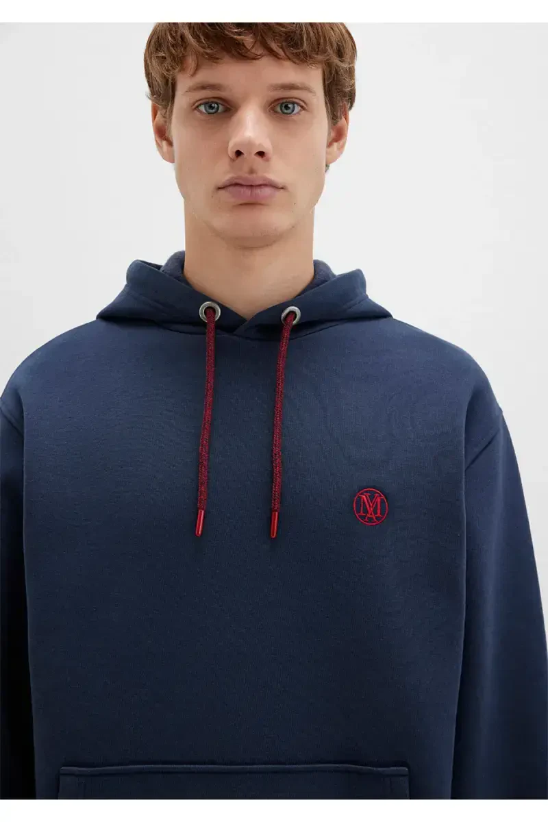 Combining style and comfort, the Logo Embroidered Hoodie Navy Sweatshirt is ready to become an indispensable part of your everyday life. Made from soft and high-quality fabric, the sweatshirt provides all-day comfort. The logo embroidery on the front adds a touch of elegance to your style. Its hood keeps you warm in cold weather, while its zippered pockets allow you to carry your belongings safely.
