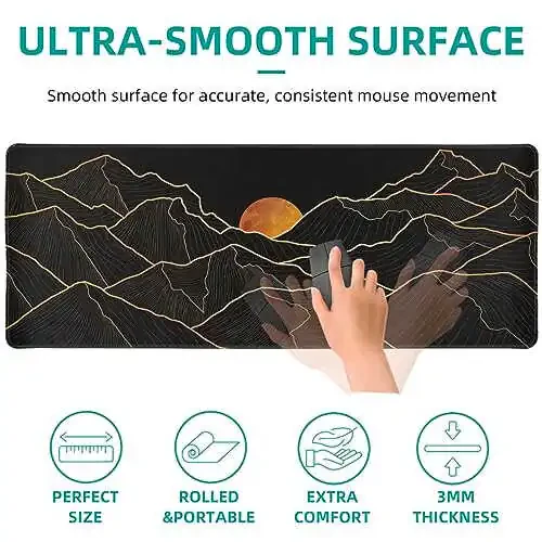 【Extra Large Mouse Pad】Our xl mousepad is designed for comfort and productivity. Measuring at 31.5x11.8 inches, it provides ample space to accommodate your mouse, keyboard, and other desk essentials. The extra thickness of 3mm not only reduces noise but also ensures a more comfortable experience for your hands. 【Smooth Surface】Experience smooth and precise mouse control with our gaming mouse pad. Featuring an ultra-smooth surface, it allows for effortless movement and accurate tracking. Whether you are a passionate gamer or a dedicated professional, our large mouse pads for desk caters to both gaming and office environments. 【Non-slip rubber base】The computer mouse pad's non-slip rubber base keeps the pad securely in place, preventing it from slipping around during intense gaming sessions or fast-paced work. It is a thoughtful gaming accessory for friends who enjoy gaming, as well as an essential office supply for those who work from home or in an office. 【Invisible Stitched Process】The invisible design of the seams of our long mouse pad not only avoids edge damage caused by long-term use, but also does not destroy the overall beauty of the pad, making it perfectly blend into the overall pattern. This design effectively extends the service life of the desk mat for desktop and is suitable for computers and laptops. 【Waterproof and Easy to Clean】Our cool mouse pad features a water-resistant coating that allows for easy cleaning and maintenance. Spilled drinks or stains can be effortlessly washed away with water or wiped clean with a damp cloth. Its heat-resistant design lets you enjoy coffee worry-free. Ensuring long-lasting use without losing its visual appeal, make your life easier with this waterproof desk mouse pad. 【Protect Your Desk】Our mouse mat does more than just provide a smooth surface for your mouse. It also doubles as a desk mat, protecting your desk from scratches, stains, and general wear and tear. This cute mouse pad can also be used as a office desk accessories and is a great gift for relatives and friends.