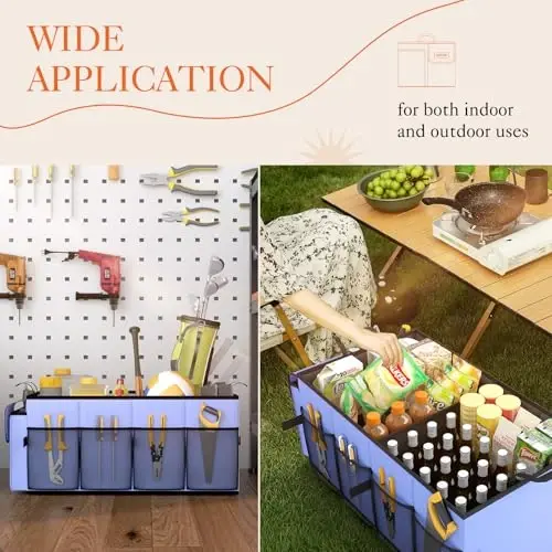 Organizing your car's trunk is now very easy and stylish with the HOTOR Large-Capacity Trunk Organizer! A cluttered trunk increases the time spent finding items and negatively affects your driving pleasure. This practical and useful trunk organizer is specially designed for SUV and sedan vehicles, offering you a spacious and organized area by eliminating the clutter in your trunk. Made of high-quality materials, the HOTOR trunk organizer is long-lasting and durable. Thanks to its foldable feature, it can be easily stored when not in use, saving you space. This organizer, which adds a modern touch to your car's interior design with its blue color, allows you to categorize your belongings with its 2 wide compartments. You can place your car care products in one compartment and your emergency supplies or daily items in the other. Thus, you can easily access everything you need. Strong carrying handles make it easy to carry the organizer even when full. The HOTOR Large-Capacity Trunk Organizer not only organizes your car's trunk but can also accompany you on picnics, camps, or shopping trips. The product's robust structure allows you to safely carry even heavy items, while its non-slip base keeps it stable in the trunk and prevents your belongings from moving. Additionally, thanks to its easy-to-clean surface, you can quickly clean it when it gets dirty. The HOTOR Large-Capacity Trunk Organizer is not just a trunk organizer but also a lifestyle product that increases the order and comfort of your vehicle. Make your driving experience more enjoyable and stress-free by keeping your car's trunk organized. Whether you go on long journeys or take care of your daily chores, the HOTOR trunk organizer will always be with you and will help you. This product will be an indispensable accessory for your car and will make your life easier. Order now and put an end to the clutter in your car!