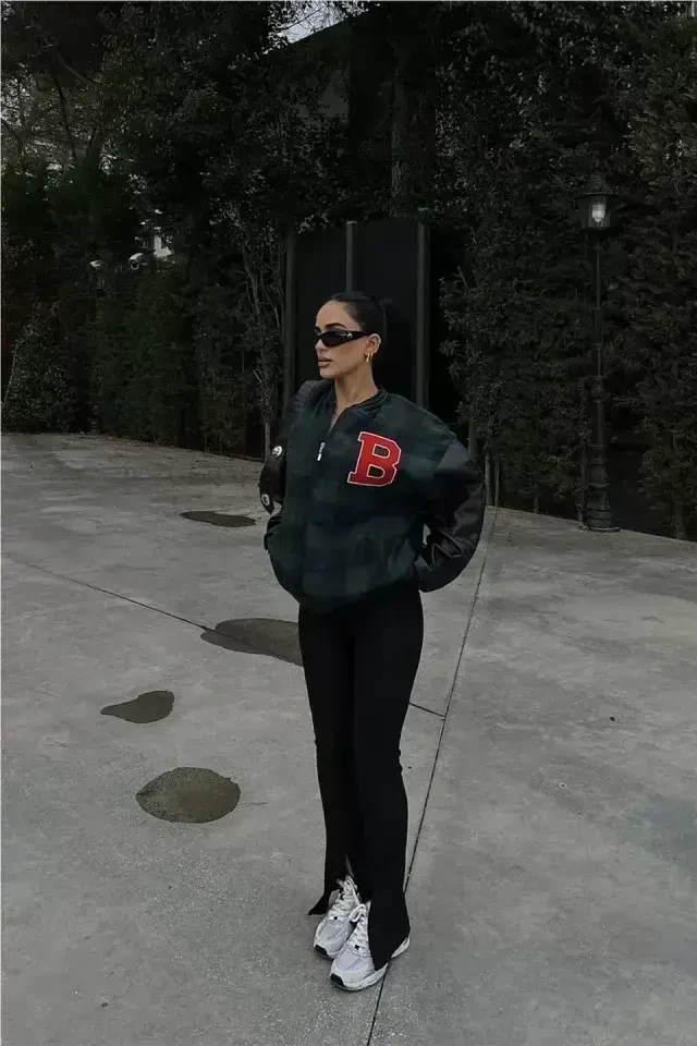 Plaid Pattern Embroidered College Jacket - Khaki is a candidate to be one of the indispensable pieces of your wardrobe! This stylish and modern college jacket attracts attention with its comfort and unique design. The timelessness of the khaki color, the dynamism of the plaid pattern, and the elegance of the embroidery details come together to offer a unique style. You can use this jacket in your daily combinations or on special occasions, and it will easily adapt to any environment.Considering our model's measurements (Height: 165, Kg: 55, Chest: 90, Waist: 72, Hip: 100), you can see more clearly how the M/38 size looks on her. The jacket offers all-day comfort thanks to its fitted cut and comfortable fabric. You can maintain your elegance without restricting your freedom of movement.The plaid pattern adds movement and vibrancy to the jacket, while the embroidery details add a unique touch. This design, which combines the sporty feel of classic college jackets with modern details, will appeal to women of all ages. The jacket is a versatile piece that can adapt to different styles and can be combined with jeans, skirts, dresses, and even leggings.This jacket, which will keep you warm in cold weather, will also complete your style. The khaki color easily harmonizes with other colors and offers the freedom to combine. You can create a casual look with sneakers or a more stylish style with heels. Plaid Pattern Embroidered College Jacket - Khaki is not just a jacket, but also a style statement. It is a piece that you should definitely have in your wardrobe to feel special and unique.