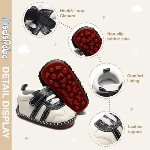 HsdsBebe Baby Boys Girls Pu Leather Hard Bottom Walking Sneakers chaqalog'ingizning birinchi qadamlarini qo'llab-quvvatlash va unga qulay yurish tajribasini taqdim etish uchun mo'ljallangan. Poyabzallarni ishlab chiqarishda ishlatiladigan materiallar chaqalog'ingizning sog'lig'iga zarar bermaydigan, yuqori sifatli va ishonchli mahsulotlardir. Chaqalog'ingizning nozik terisiga mos ravishda ishlab chiqarilgan bo'lib, allergik reaktsiyalarga sabab bo'lmaydi. Poyafzallarning uzoq umr ko'rishi uchun ularni muntazam ravishda tozalash va tegishli sharoitlarda saqlash tavsiya etiladi. HsdsBebe chaqalog'ingizning o'sish jarayonida unga hamroh bo'ladigan, ishonchli va zamonaviy mahsulotlarni taqdim etishda davom etadi.