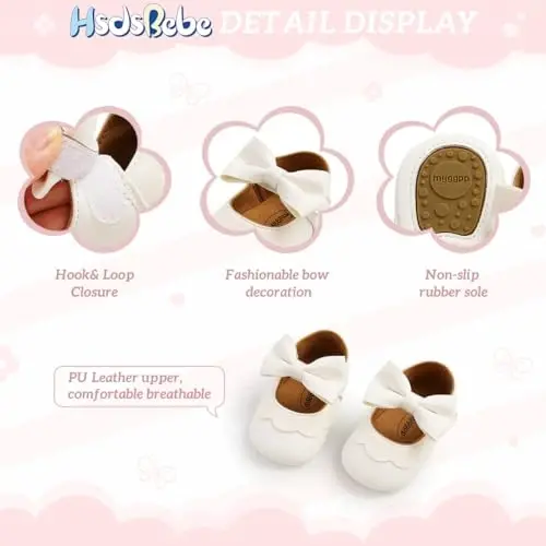 HsdsBebe Infant Baby Girls Mary Jane Flats chaqalog'ingizning ilk qadamlarini qo'yishda unga hamroh bo'ladigan ajoyib tanlovdir. Chaqalog'ingizning oyoq salomatligi va qulayligini birinchi o'ringa qo'yadigan ushbu poyabzallar, shuningdek, zamonaviy va yoqimli ko'rinishni taqdim etadi. Chaqalog'ingizning har bir qadamida unga ishonch va yordam beradigan HsdsBebe Mary Jane baletkalari unutilmas xotiralar yaratishga yordam beradi.