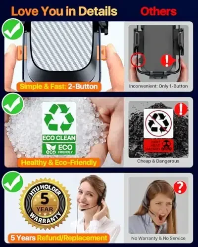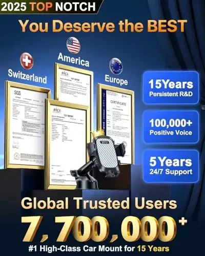 HTU 2025 Best Car Phone Holder 【Ultimate 5-in-1 & Upgraded 100+LBS Strongest Suction】【True Military-Grade & Safety Cert】 360° Windshield Dashboard Vent Mount Stand for iPhone Android & Truck, Grey