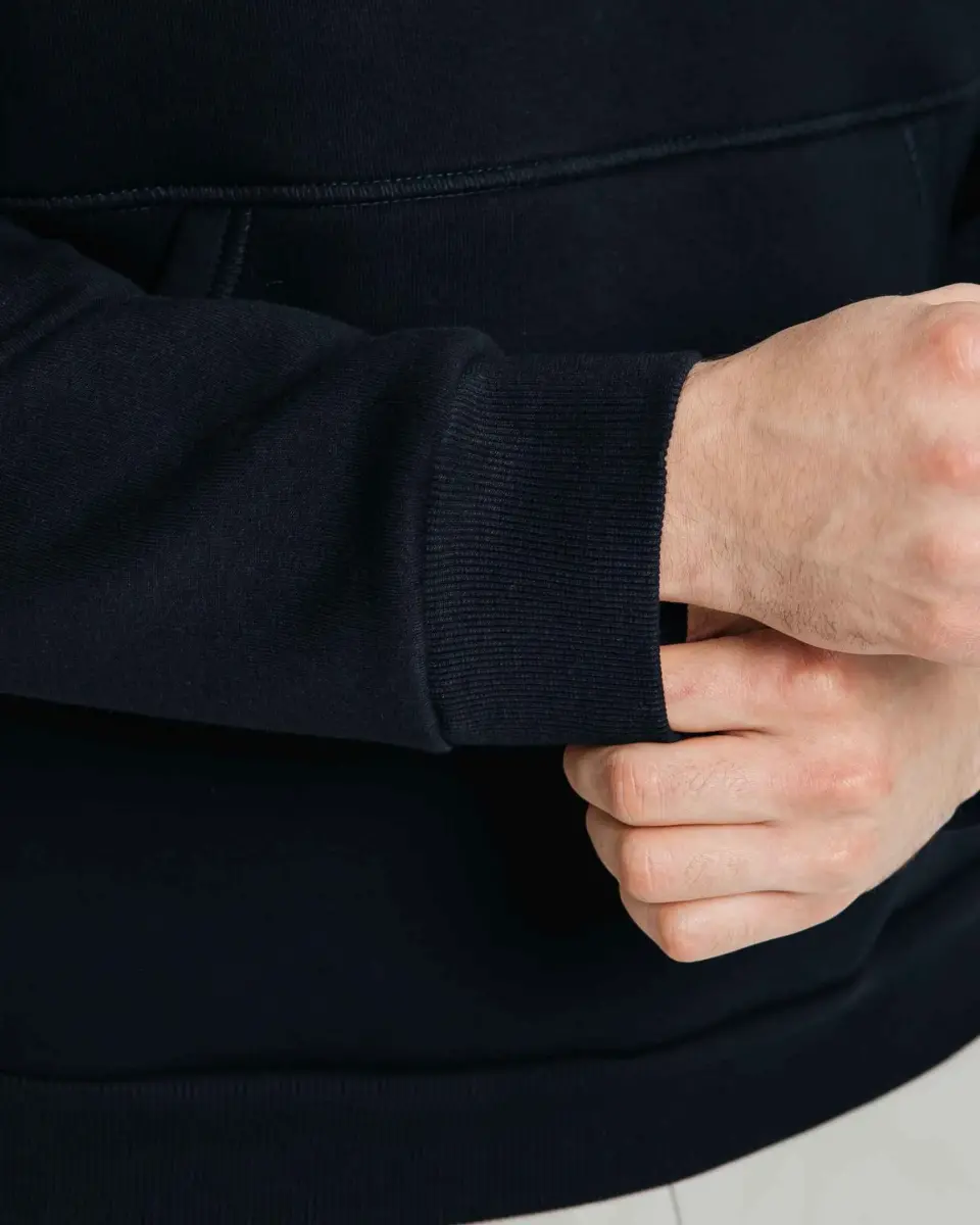 Garderobingizning ajralmas qismiga aylanishga nomzod bo'lgan ushbu to'q ko'k (Dark Blue) xudi ham nafislikni, ham yuqori qulaylikni o'zida mujassam etgan. Kundalik hayot sur'atiga moslashar ekan, uslubingizdan voz kechmasligingizni ta'minlaydigan lakonik va zamonaviy dizayn har qanday kiyim bilan mukammal uyg'unlashadi. Xoh ertalabki sayrlarda, xoh do'stlaringiz bilan hafta oxiridagi mashg'ulotlarda foydalaning; bu svitshot har bir lahzangizga hamroh bo'ladigan ko'p qirrali tanlovdir. Mato sifati teringizga tekkan birinchi lahzadan boshlab yumshoqligi va nafas oluvchi tuzilishi bilan kun bo'yi o'zingizni tetik va xotirjam his qilishingizni ta'minlaydi. Chuqur kapyushon dizayni salqin havolarda qo'shimcha himoyani taqdim etsa, sozlanishi mumkin bo'lgan bog'ichlari tufayli yuz tuzilishingizga qarab mukammal darajada shaxsiylashtirilishi mumkin. Old qismidagi keng kanguru cho'ntak telefon, kalit yoki qo'llaringizni isitish kabi ehtiyojlaringiz uchun amaliy va keng joy taklif qiladi. Bilak qismlaridagi maxsus elastik manjetlar esa mahsulotning tanangizga to'liq o'rnashishiga yordam berar ekan, issiqlik yo'qotilishini minimal darajaga tushiradi. Sodda, abadiy va funksional tuzilishi bilan bu xudi mavsumlar oralig'ida qatlamli kiyinishning asosiy qismi bo'ladi; jin shimlaridan tortib sport shimlariigacha keng assortimentda kombinatsiya qilinishi mumkin. Shaharlik va erkin ruhingizni aks ettiruvchi bu dizayn sifati bilan ko'p yillar davomida shkafingizning sevimli buyumi bo'lib qoladi.