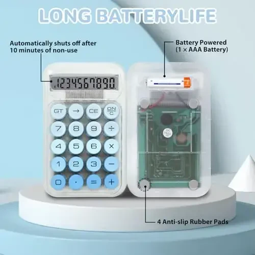 HUTUDD Chiroyli Kalkulyator: Retro Dizayn, Mexanik Tugmalar, LCD Ekran, Ergonomik, Ko'chma, Moviy Rang
