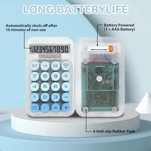 HUTUDD Cute Calculator bilan hisob-kitoblaringizni qiziqarli va samarali qiling! Ushbu yoqimli va funktsional stol usti kalkulyatori retro dizayni va zamonaviy xususiyatlari bilan ajralib turadi. Mexanik tugmachalar paneli tufayli har bir tugmani bosganingizda yoqimli bosish ovozini eshitasiz, tez va aniq ma'lumot kiritishdan zavqlanasiz. Katta, yumaloq tugmalar barmoqlaringiz qulay bosishi uchun mo'ljallangan, shuning uchun kamroq xato qilasiz va samaraliroq ishlaysiz. LCD displey maxsus sozlangan pigmentlar tufayli aniq va oson o'qiladigan tasvirni taqdim etadi. Yaqindan qarang yoki uzoqdan, raqamlarni osongina ko'rishingiz mumkin. 10 xonali hisoblash imkoniyati kundalik foydalanish uchun idealdir. 15° qiyalikdagi ekran, ergonomik dizayni tufayli o'qish charchoqini kamaytiradi va uzoq muddatli foydalanishda ham qulaylikni ta'minlaydi. HUTUDD Cute Calculator faqat bitta AAA batareyasi bilan ishlaydi (batareya kiritilmagan), bu uni amaliy va tejamkor variantga aylantiradi. Avtomatik o'chirish xususiyati tufayli 10 daqiqa davomida ishlatilmaganda o'z-o'zidan o'chadi, shuning uchun batareya quvvatini uzaytiradi va energiya tejaydi. Bardoshli va ko'chma dizayni tufayli ushbu kalkulyatorni hamma joyga olib borishingiz mumkin. Yuqori sifatli, shaffof ABS plastmassadan tayyorlangan, qo'lda yoqimli tuyg'u beradi va engil. Stol ustida ishlatishingiz mumkin, shuningdek, qo'lingizda ham qulay foydalanishingiz mumkin. Pastki qismida joylashgan 4 dona sirpanishga qarshi yostiqcha foydalanish vaqtida sirpanishini oldini oladi. Kompakt o'lchami (3.54" x 5.75") unchalik ko'p joy egallamaydi, cho'ntaklaringiz va sumkalaringizga osongina sig'adi. Shaffof korpusi va gradyan rangli tugmachalari uni boshqa kalkulyatorlardan ajratib turadi va uslubingizni aks ettiradi. HUTUDD Cute Calculator biznes, ofis, uy, asosiy byudjetlashtirish, maktab, do'kon, sayohat kabi ko'plab turli xil muhitlarda foydalanish uchun javob beradi. Kattalar ham, talabalar uchun ham ideal va kundalik hisoblash ehtiyojlaringizni qondirish uchun ajoyib vositadir. Oila a'zolaringizga, do'stlaringizga, talabalaringizga va ish hamkasblaringizga amaliy sovg'a sifatida ham berishingiz mumkin.
