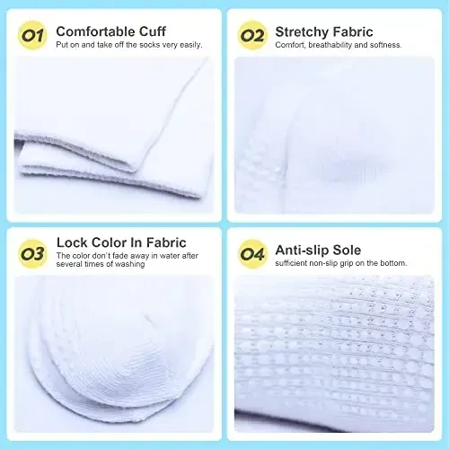 Эти нескользящие носки разработаны с учетом безопасности младенцев и детей. Силиконовые точки на подошве имеют разные размеры и стратегически расположены, чтобы свести к минимуму риск скольжения. Эластичная структура носков облегает ноги, не сдавливая их, и обеспечивает комфорт в течение всего дня. Кроме того, благодаря влагопоглощающим и дышащим свойствам ноги остаются сухими и прохладными. Эти носки могут стать отличным вариантом подарка на особые случаи, такие как Рождество, день рождения или День защиты детей. Пожалуйста, не используйте отбеливатель и не подвергайте химчистке.