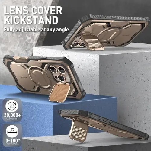 [Compatibility] Compatible with iPhone 16 Pro Max 6.9 Inch (2024 Release). [Built-in Screen Protector] Built-in screen protector guards against scratches without compromising touch sensitivity [Innovative Camera Control Button Design] The built-in camera control button design is precisely manufactured with 46 pure copper conductor, seamlessly replicating iPhone 16 capture button functionality for better user experience. [Built-in Camera Cover doubles as Kickstand] Zinc alloy anodized camera cover protect lenses while doubling as a kickstand to offer multiple viewing angles [Strong Magnetic Absorption] Built-in N52 magnet delivers a magnetic force of up to 2500g, ensuring seamless compatibility with a diverse range of MagSafe accessories (magnetic car mount, MagSafe wireless charger, magnetic card holder, desktop magnetic wireless charging stand) [Military Protection] 20ft drop tested with 360° full-body protection, bolstered by four-corner airbag technology for shock absorption. Raised bezels and camera lens cover provides an extra defense against accidental scratches