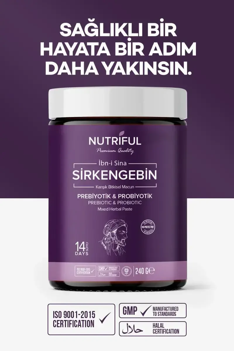 Ibn Sino Sirkengebin Prebiotik shaklidagi pastasi tabiiy va sog'lom turmush tarzini izlovchilar uchun ajoyib tanlovdir. Ushbu noyob pasta an'anaviy sirkengebinning barcha foydalarini prebiotiklar kuchini birlashtiradi. U immunitet tizimini qo'llab-quvvatlash, ovqat hazm qilish tizimini tartibga solish va umumiy sog'liqni saqlashni yaxshilash uchun mo'ljallangan.