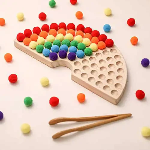 yog'och pegin taxtasi, boncuk o'yini, ranglarni saralash, sanash o'yini, moslashtirish o'yini, nozik motor ko'nikmalari, montessori o'yinchoqi, bolalar uchun o'yinchoqlar, ta'limiy o'yinchoqlar, chaqaloq o'yinchoqlari, kamalak