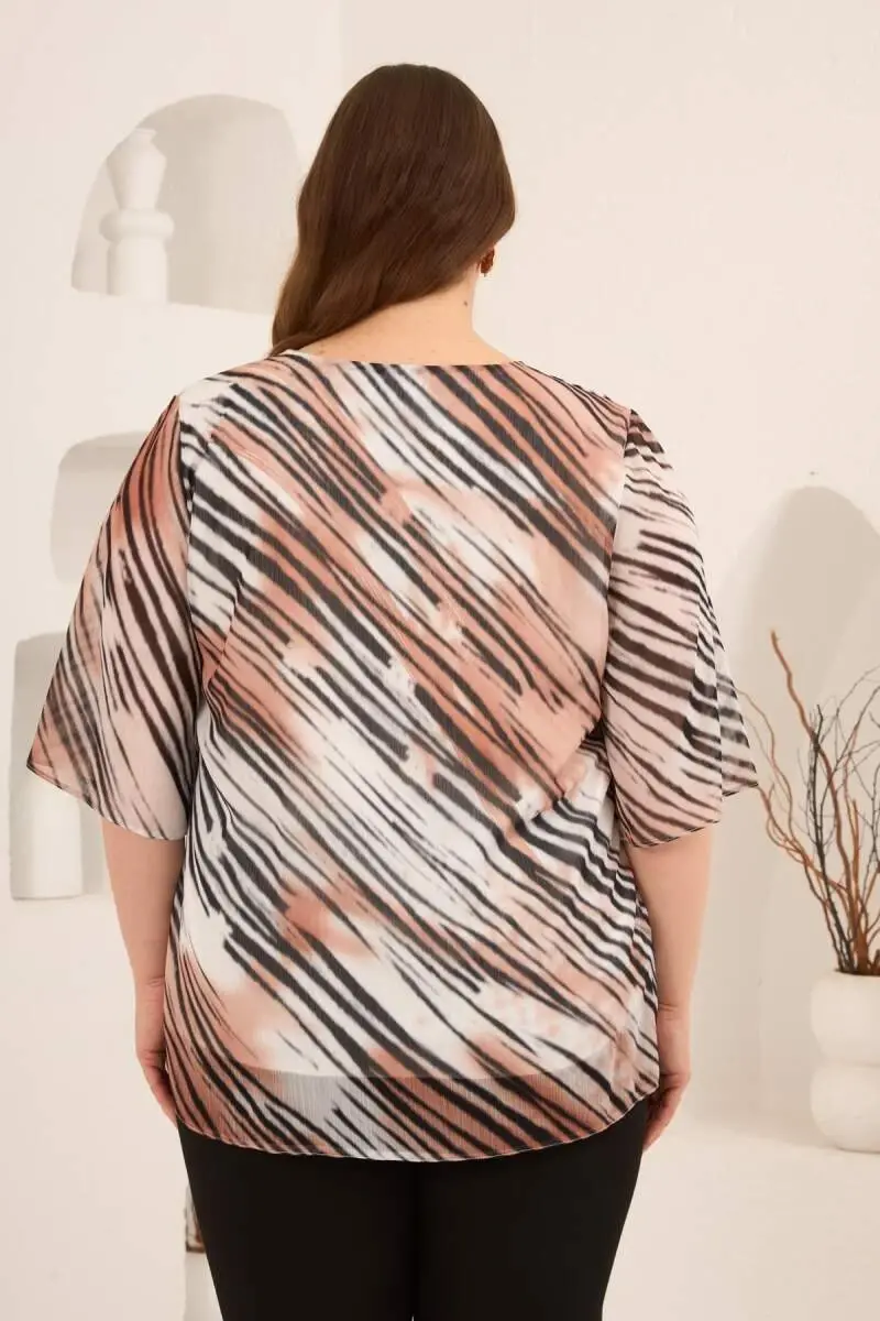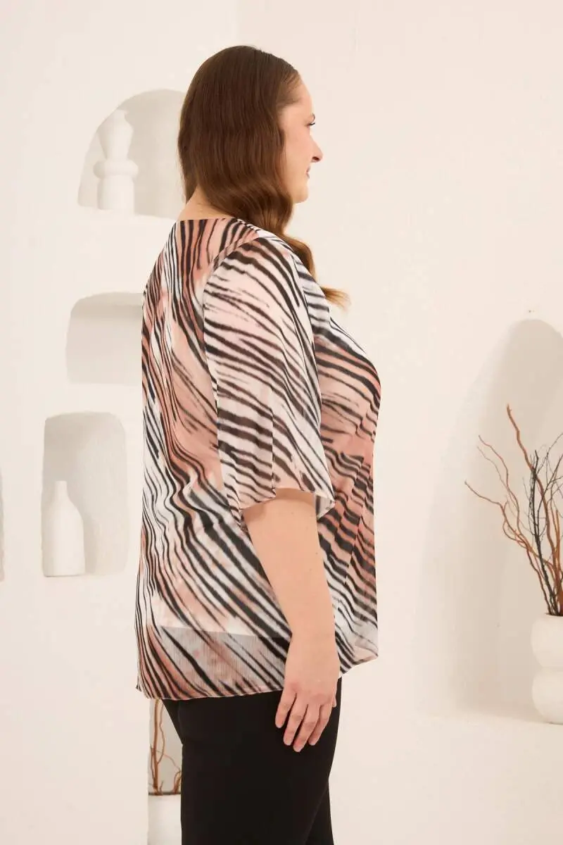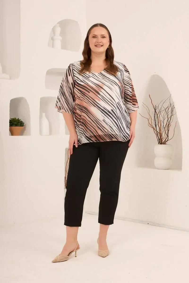 İçi Astarlı Büyük Beden Şifon Bluz Vizon