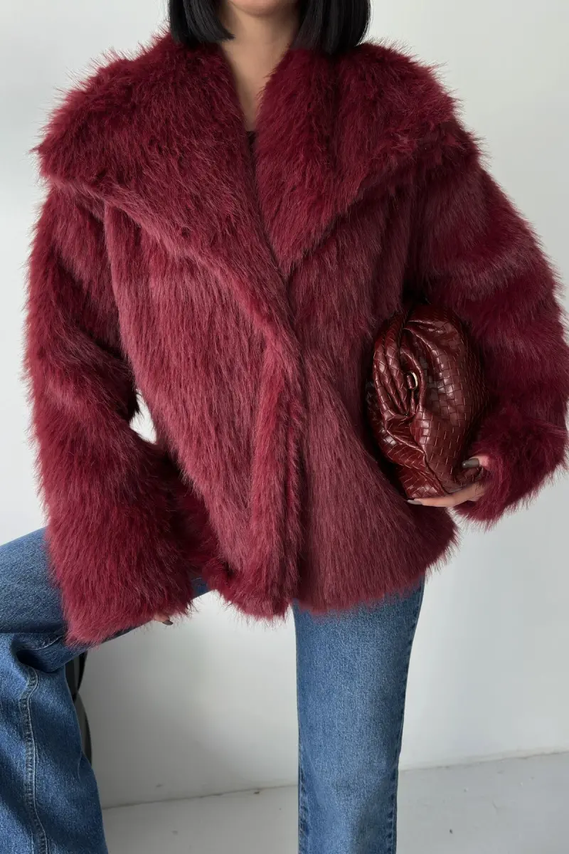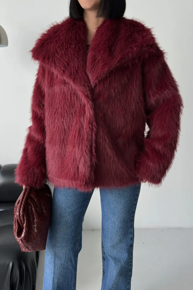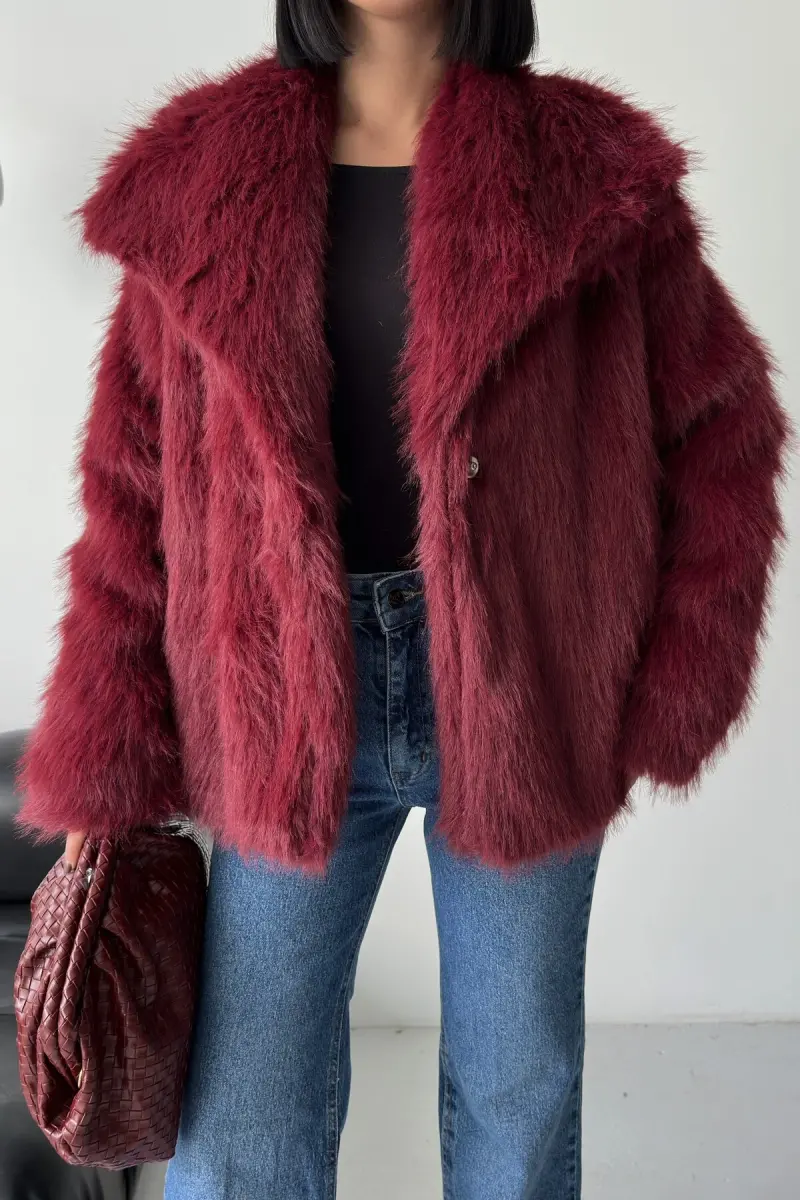 İçi Astarlı Premium bordo kürk ceket-Bordo
