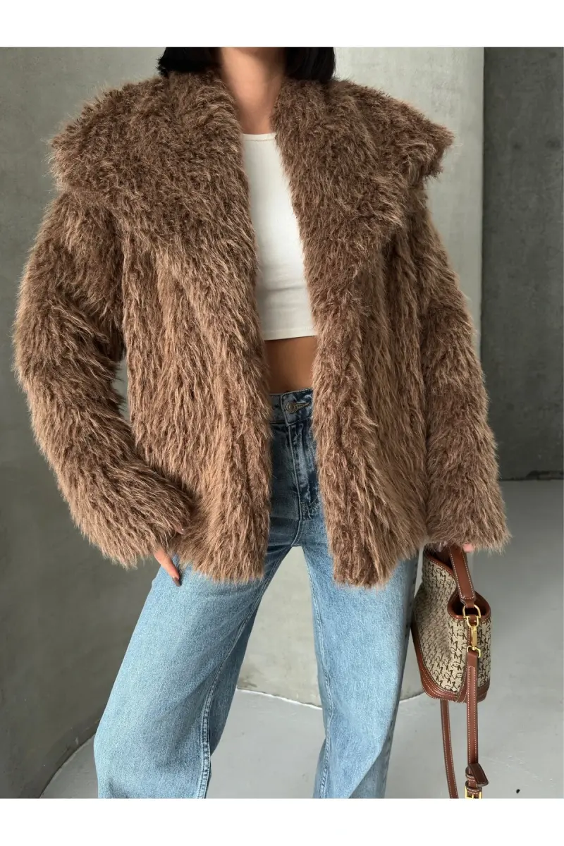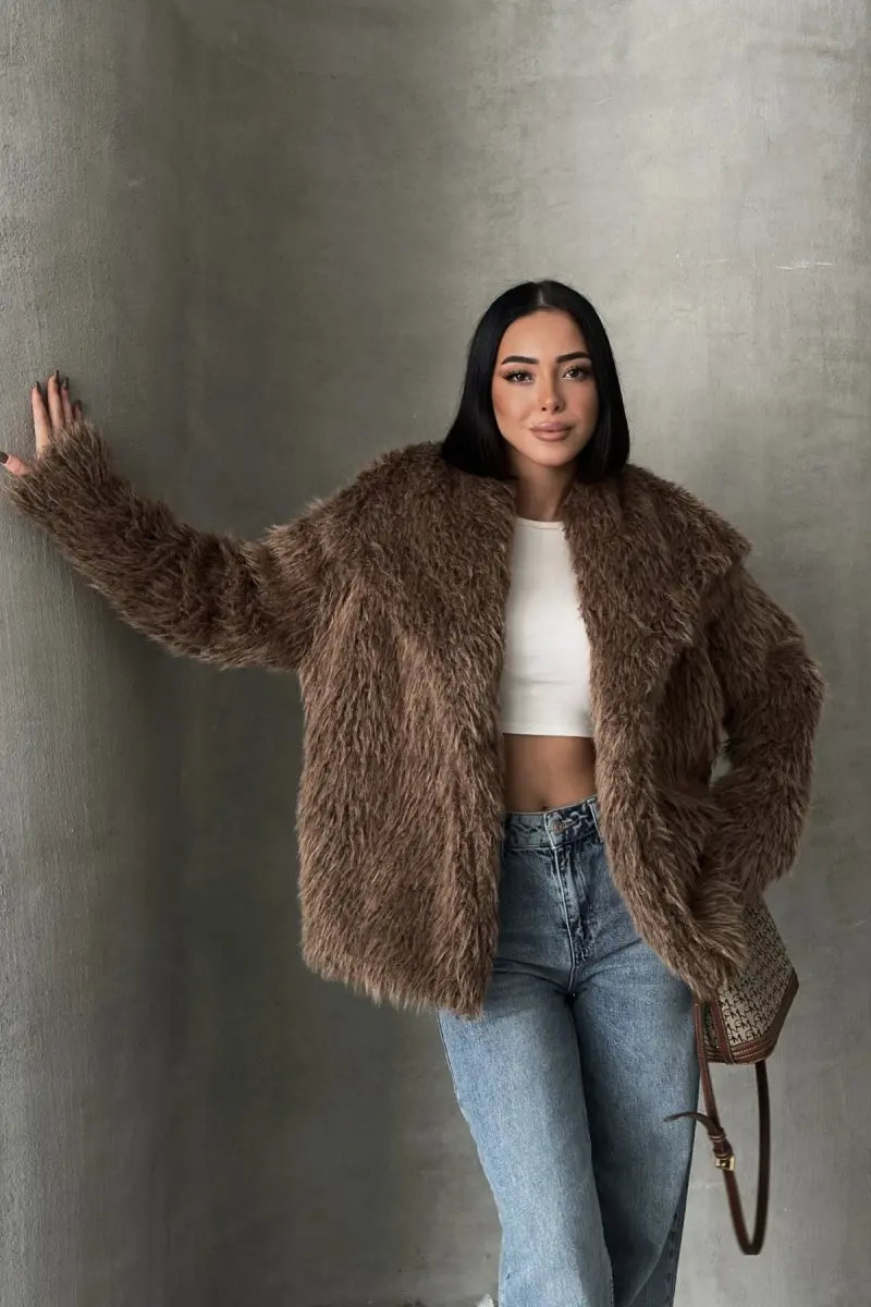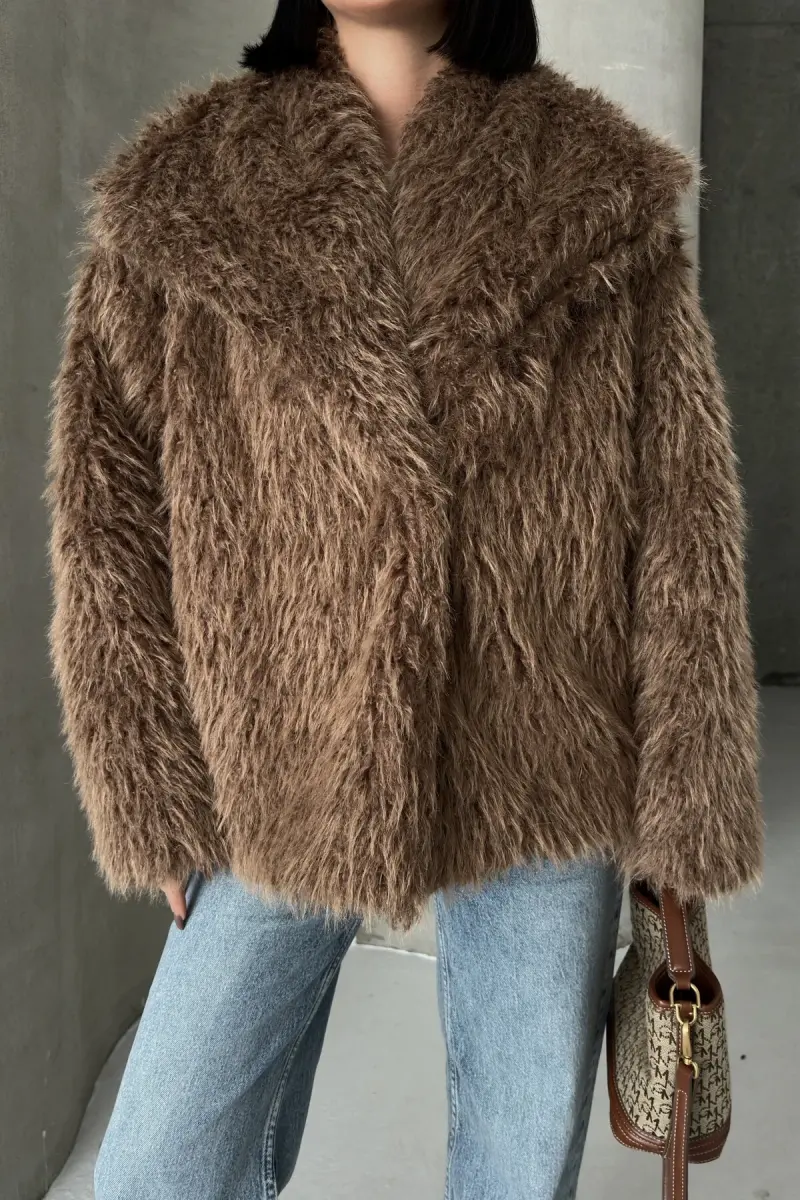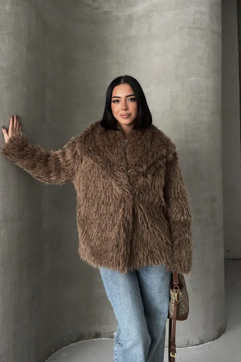 İçi Astarlı Premium Siyah Kürk-Kahverengi