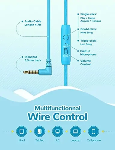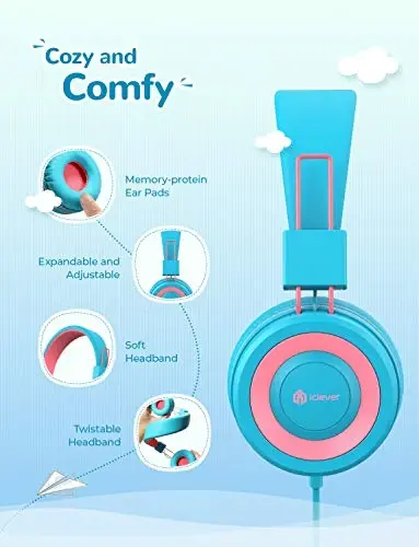 iClever Kids Headphones with Cord, 85/94dB Safe Volume Tech, Bending Resistance Durable, Foldable, Stereo Sound 3.5mm Jack Wired Headphones for Kids Boys Girls Tablet/Travel/School, HS14 Blue Pink