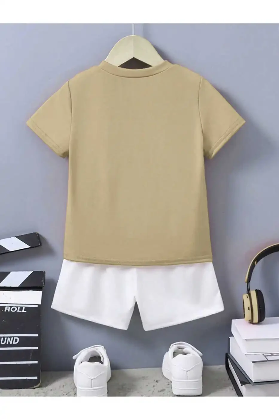 Познакомьтесь с Идеальным Хлопковым Детским Комплектом, который создан, чтобы ваши маленькие непоседы чувствовали себя комфортно и стильно в жаркие летние дни! Бежевая футболка с велосипедным воротником обеспечивает комфорт на весь день благодаря мягкой хлопковой ткани. Симпатичный принт на футболке отражает стиль вашего ребенка. Белые шорты, идущие в комплекте, обеспечивают практичность и не стесняют свободу движений.