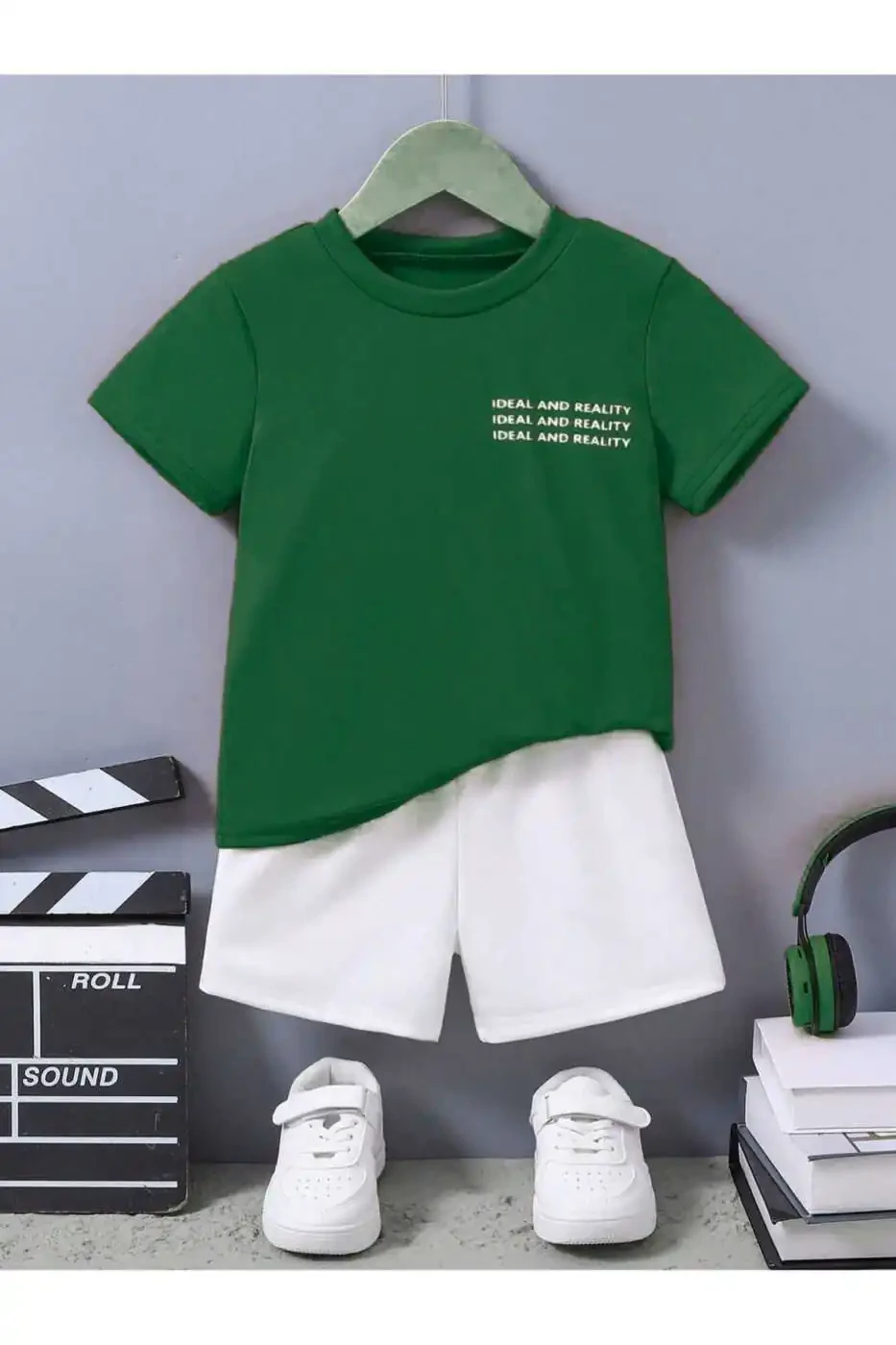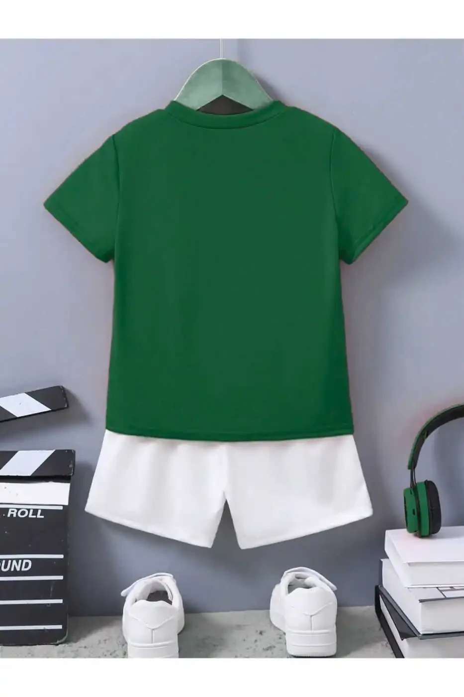 Идеальный выбор, чтобы ваш ребенок выглядел комфортно и стильно летом! Этот набор изготовлен из мягкой хлопковой ткани, которая не повредит кожу вашего ребенка и пропускает воздух. Набор состоит из зеленой футболки с велосипедным воротником и белых шорт - классика, которая должна быть в гардеробе каждого ребенка. Милый принт на футболке дополнит стиль вашего ребенка.