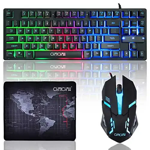 CHONCHOW 87-клавишная игровая клавиатура TKL и мышь - проводная клавиатура с радужной подсветкой LED 800-3200 DPI RGB-мышь - для игр на PS4 Xbox PC ноутбуке Mac