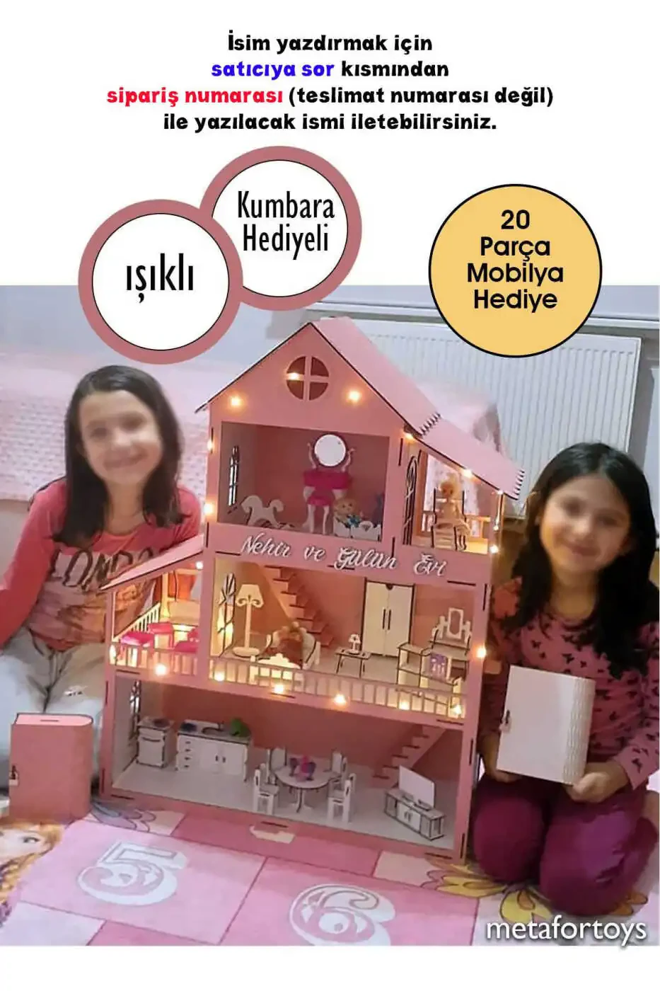 60 Cm Деревянный игровой домик с подсветкой (РОЗОВЫЙ) - Идеальный подарок для детей