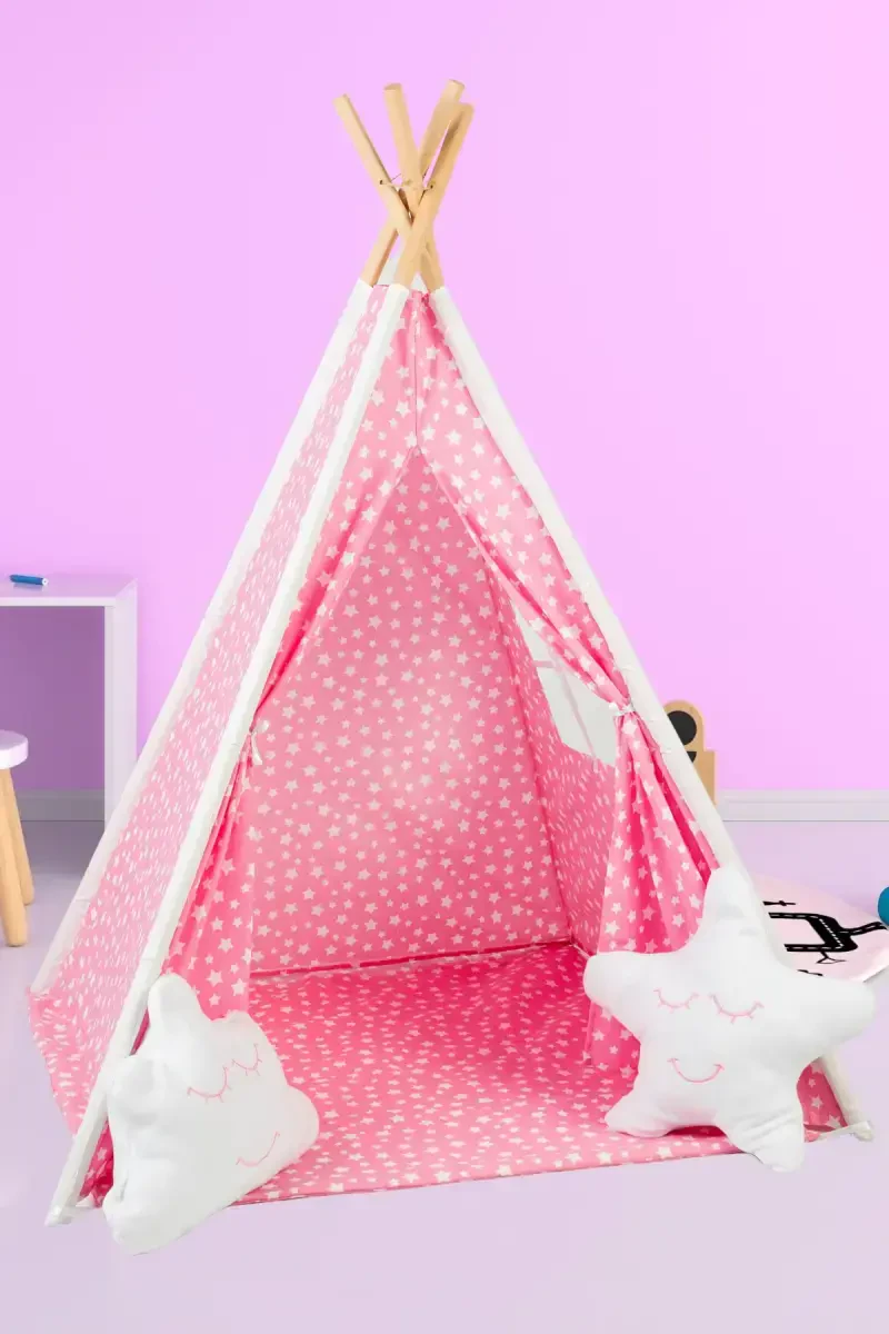 Детская игровая палатка - Розовая хлопковая палатка в стиле типи | Веселье с друзьями!