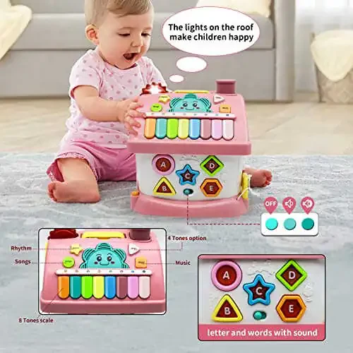 Игрушки Монтессори для девочек старше 1 года - Игрушки для малышей в возрасте 1-2 лет, 8-в-1 игрушки со звуком/освещением/музыкой/часами/телефоном/машиной, Умный дом для обучения